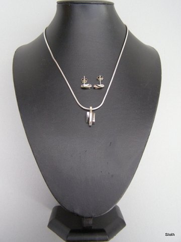 Halssmykke med Ørestikker 925 S. JAa, Jens Johs Aagaard Svendborg L: 41,5 cm
