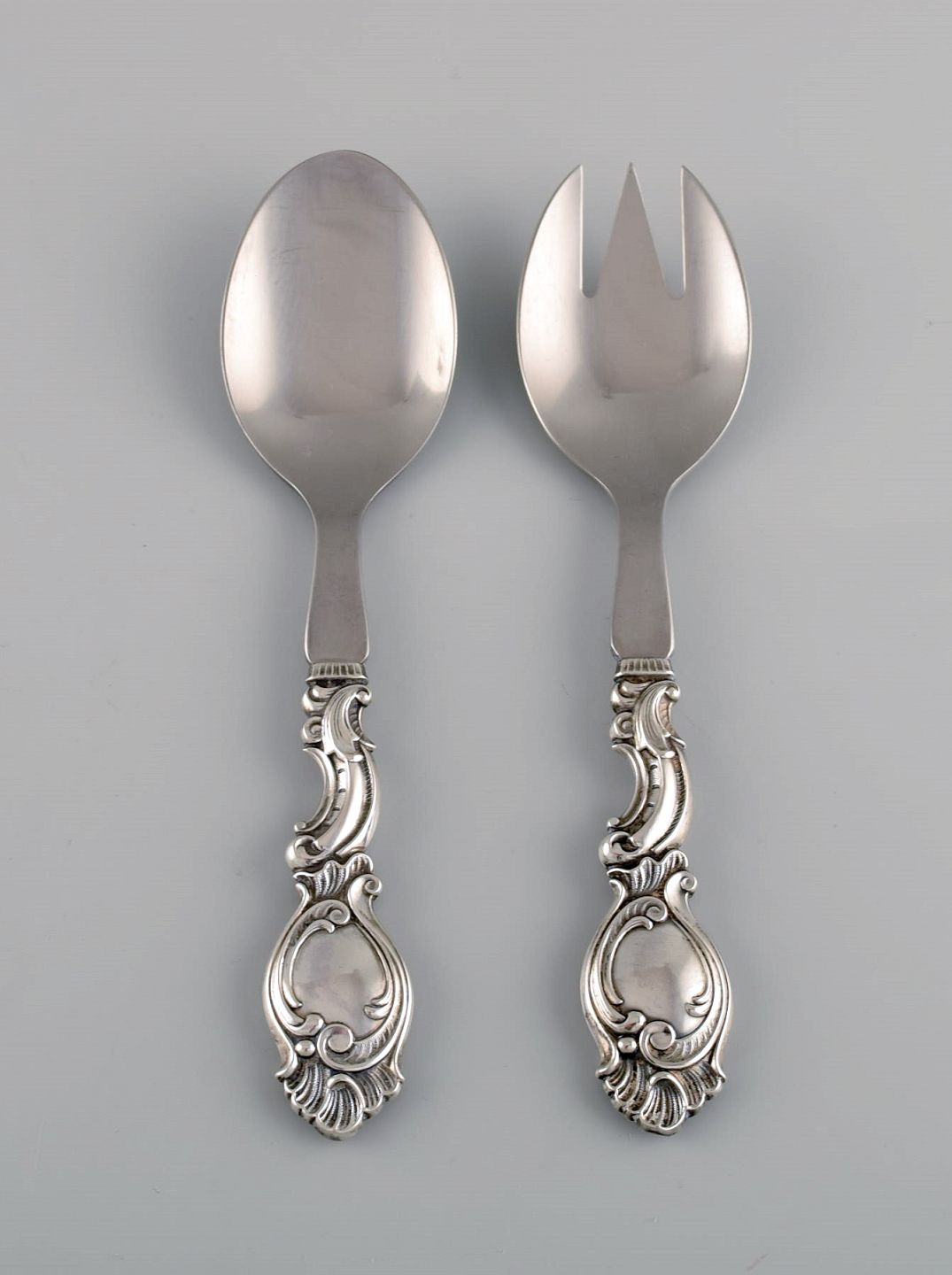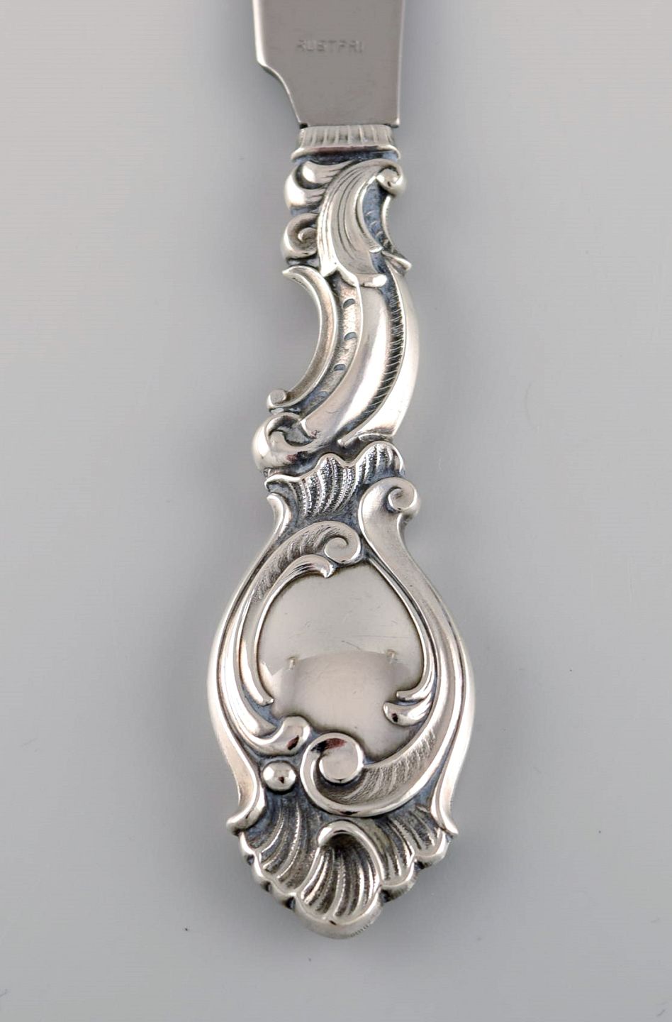 Dansk sølvsmed. Fem serveringsdele i tretårnet sølv. Rokoko stil, 1940'erne.