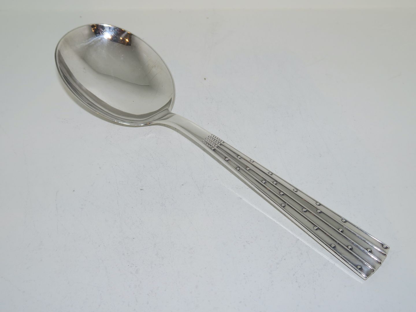 Designet af Jens Harald Quistgaard og udført hos sølvsmed O.V. Mogensen.