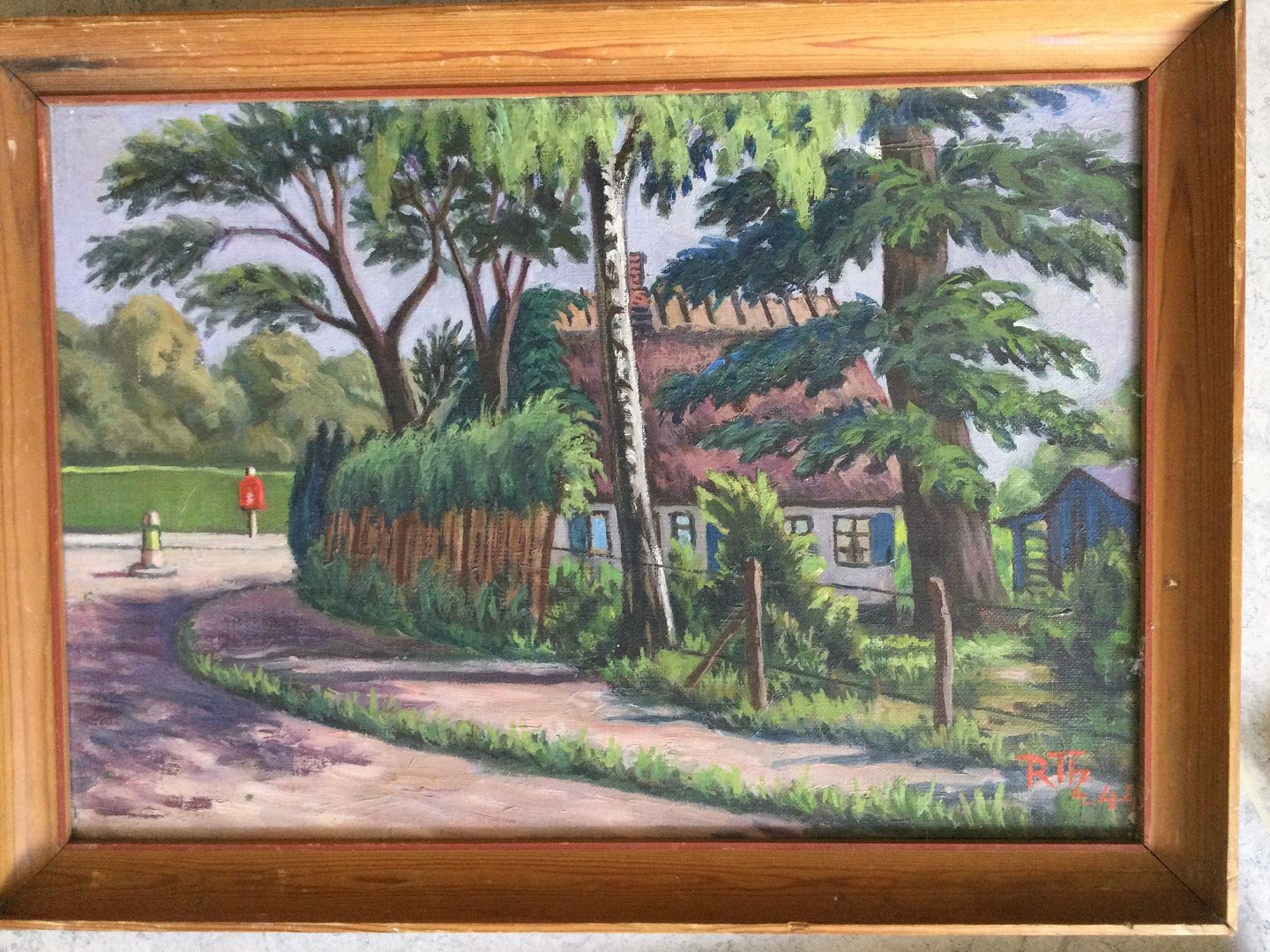 Maleri fra Ordrup med "Mor Karens Hus" 1944.