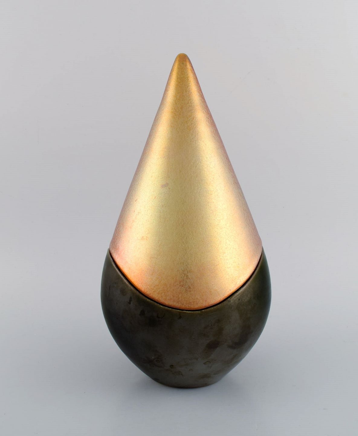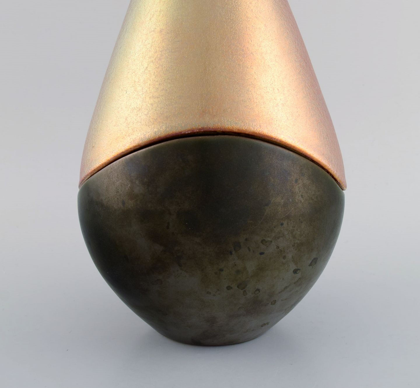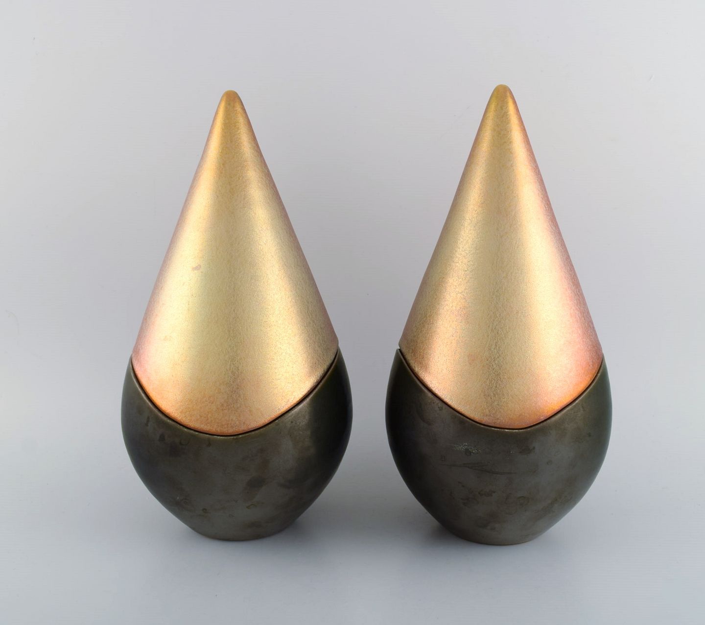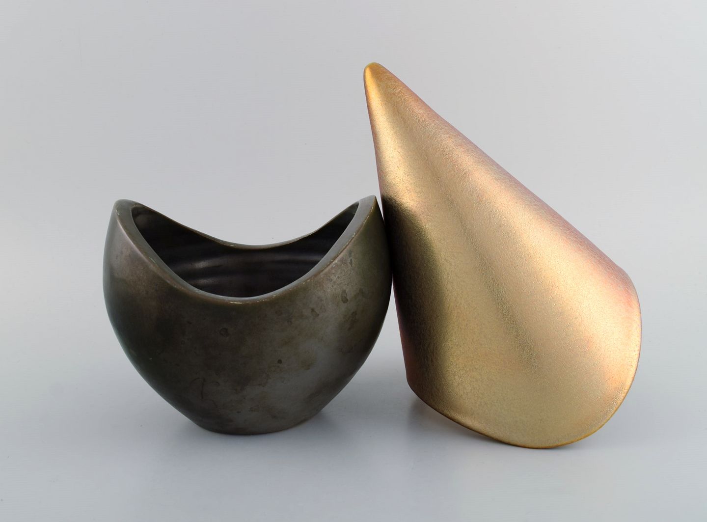 Mobach, Holland. To store modernistiske unika lågkrukker i glaseret keramik. 1980'erne.