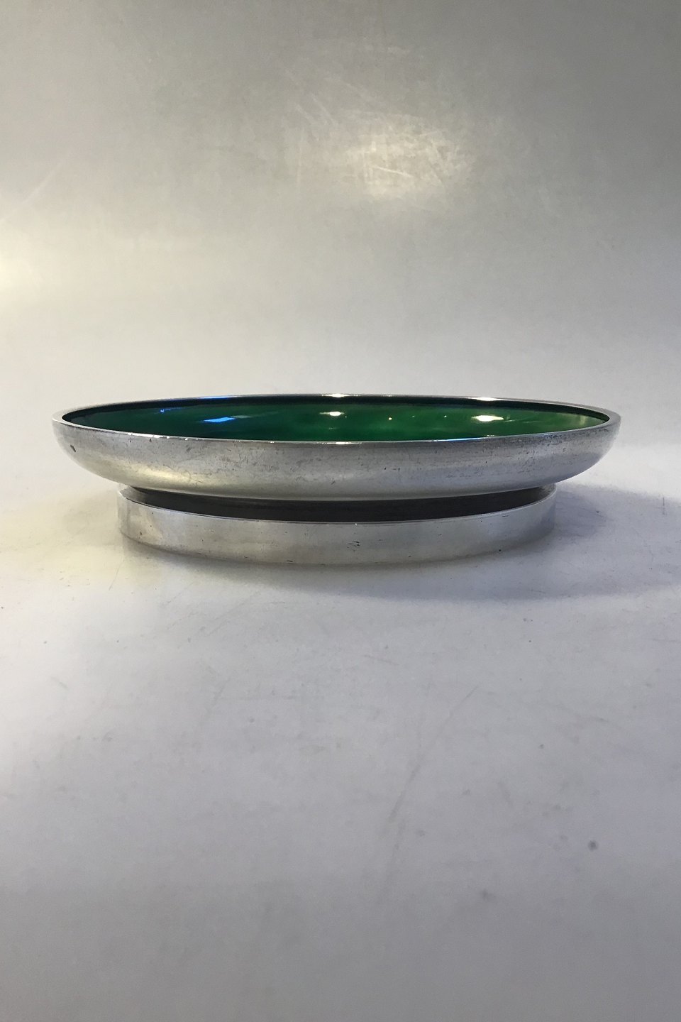 Evald Nielsen Sterling Sølv Lav Skål med grøn emalje(1941)