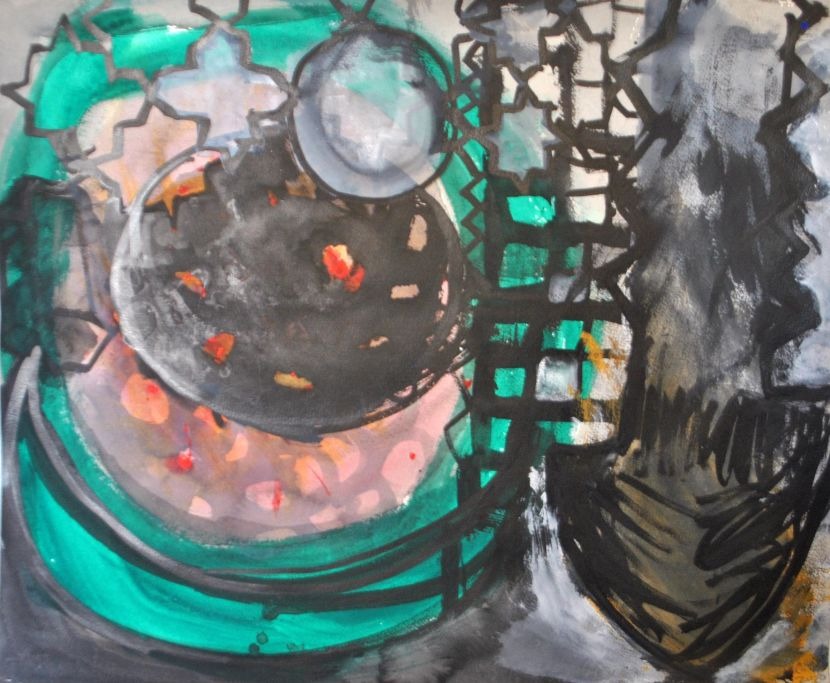 Kühl, Lena (1950 -) Denmark: Composition. Signed 2020. Ink / watercolor on paper. 46 x 56 cm. Unframed.
