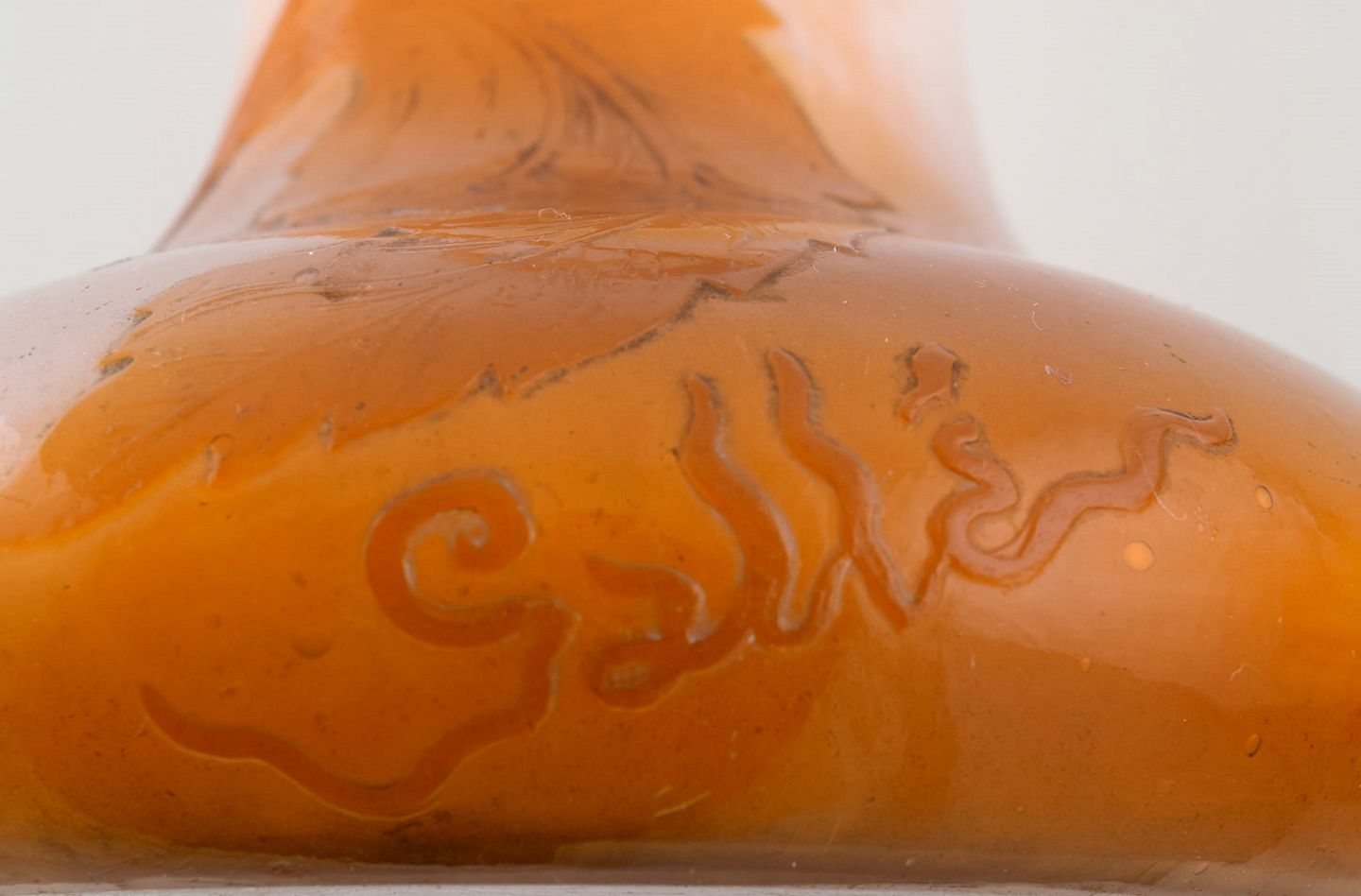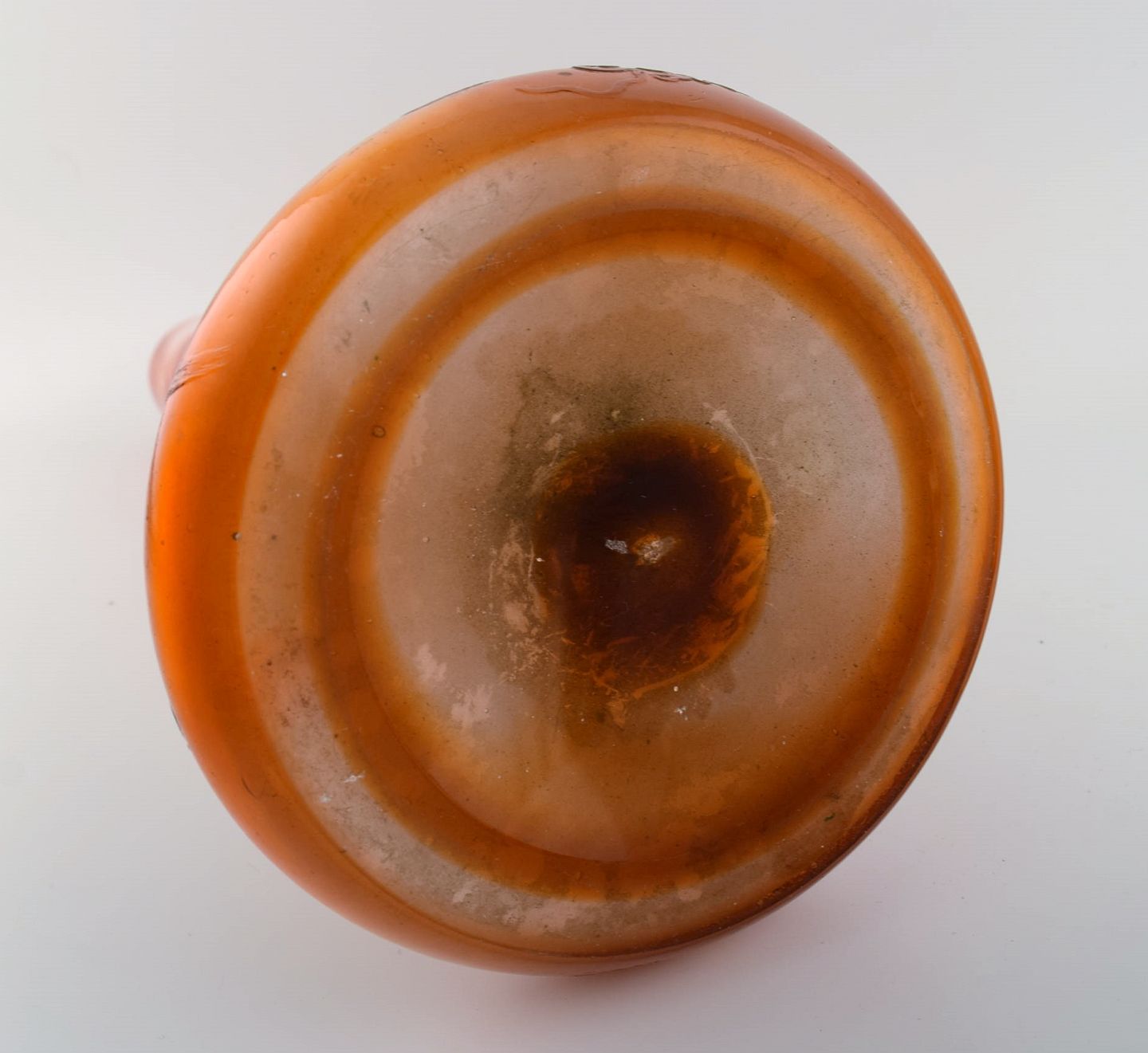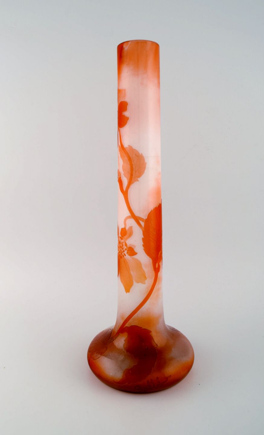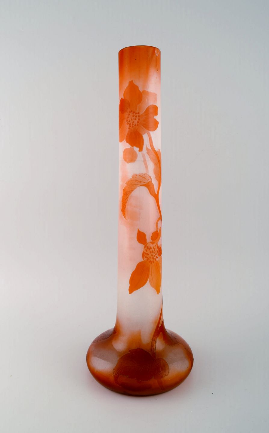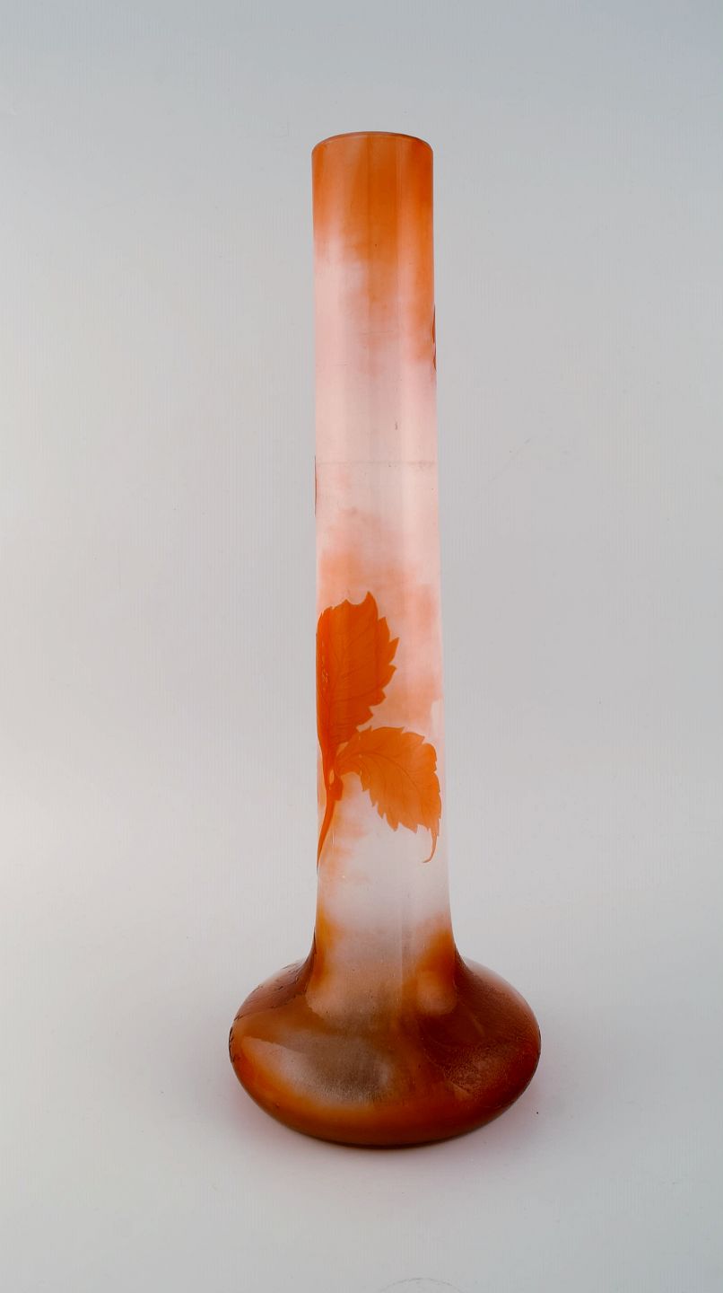 Kolossal antik Emile Gallé vase i matteret kunstglas med orange overfang udskåret i form af blomster og bladværk. Japanisme, 1890'erne. Museumskvalitet.
