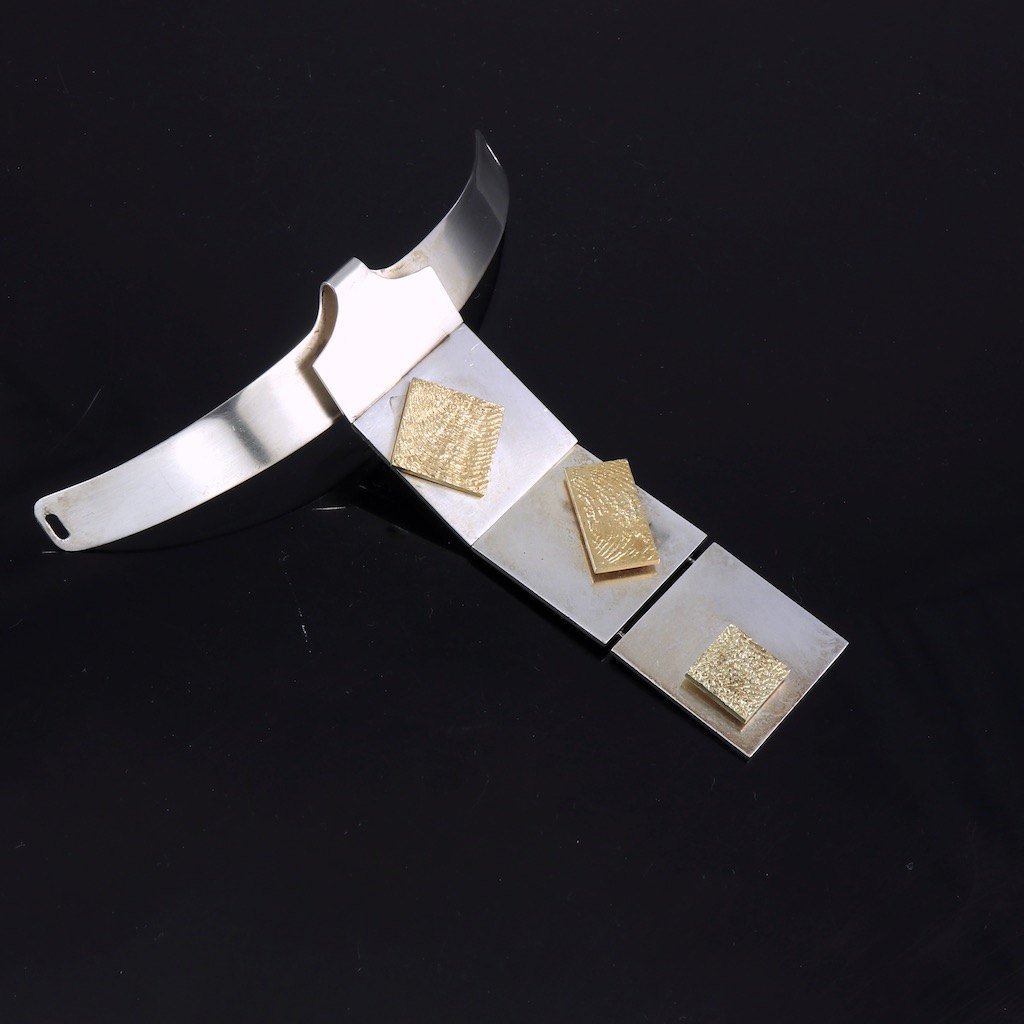 Thor Selzer. Halssmykke / Slips i sterlingsølv, delvist forgyldt. 1960erne.