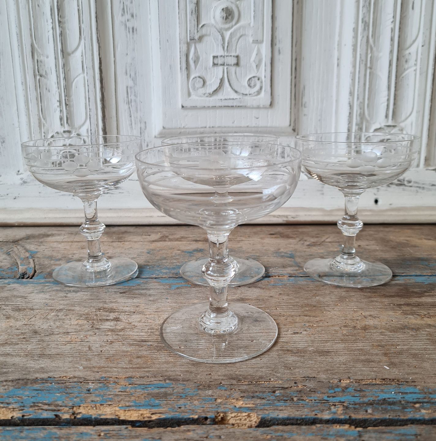 Sæt på 4 franske champagne skåle med smukke slibninger