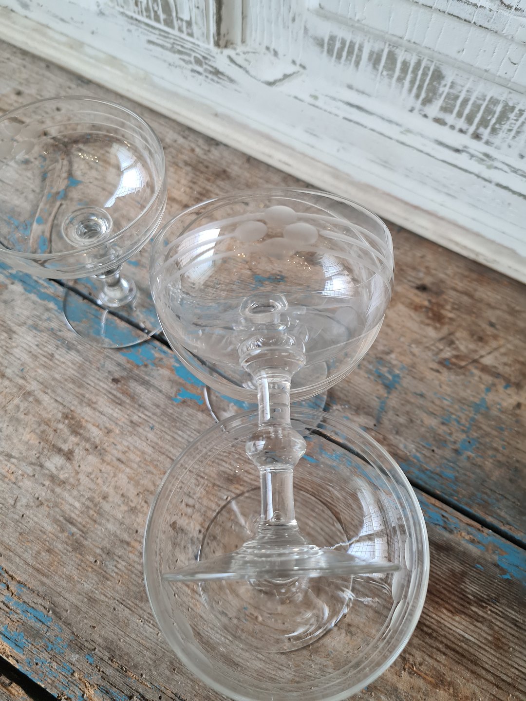 Sæt på 4 franske champagne skåle med smukke slibninger, fra starten af år 1900.