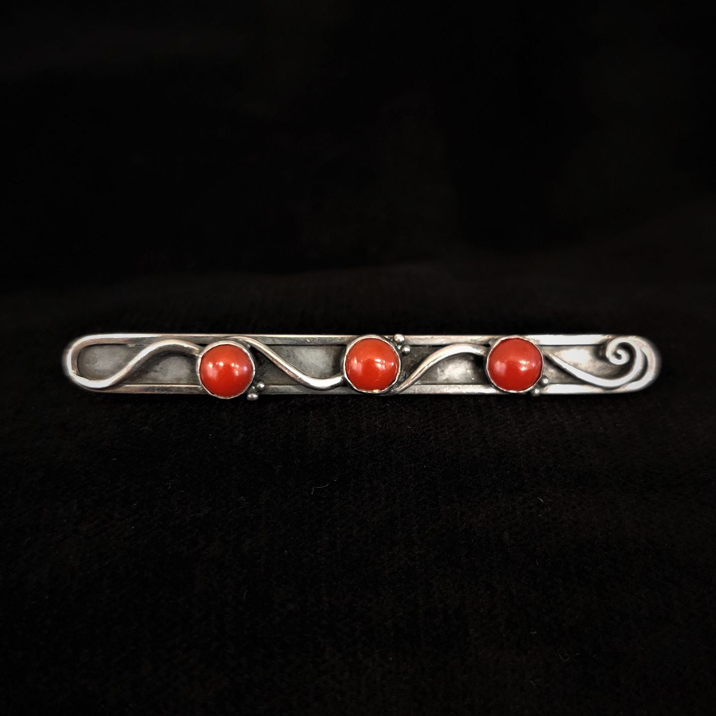 Just Andersen; A brooch made of sterling silver, set with corals, design 314.