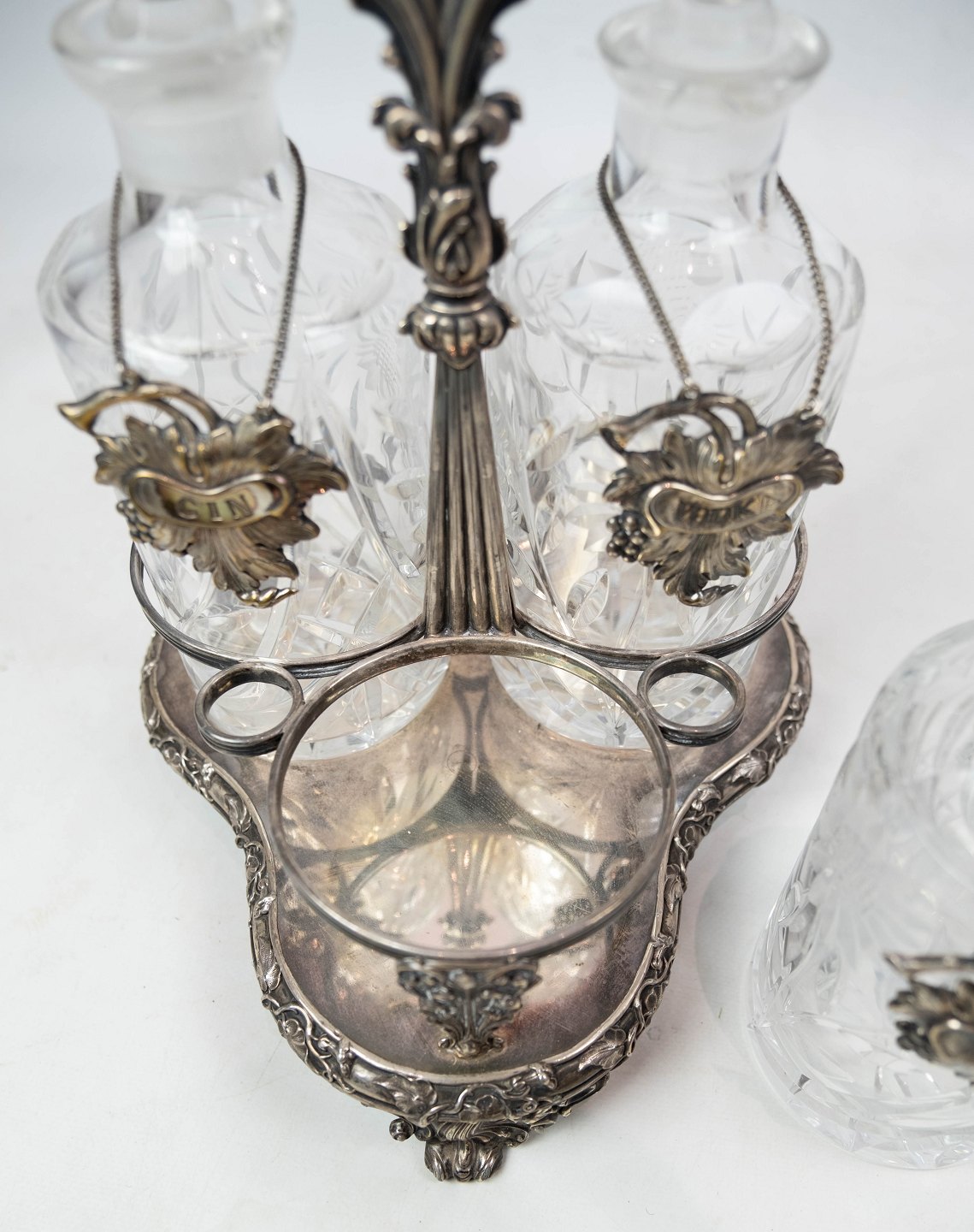 Forsølvet tantalus med sæt af tre karafler, i flot antik stand fra 1880.