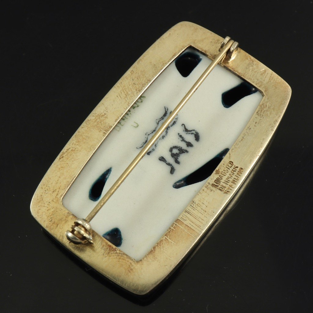Jais Nielsen 1885-1961. Ceramic Brooch with glace and gilded silver mounting.