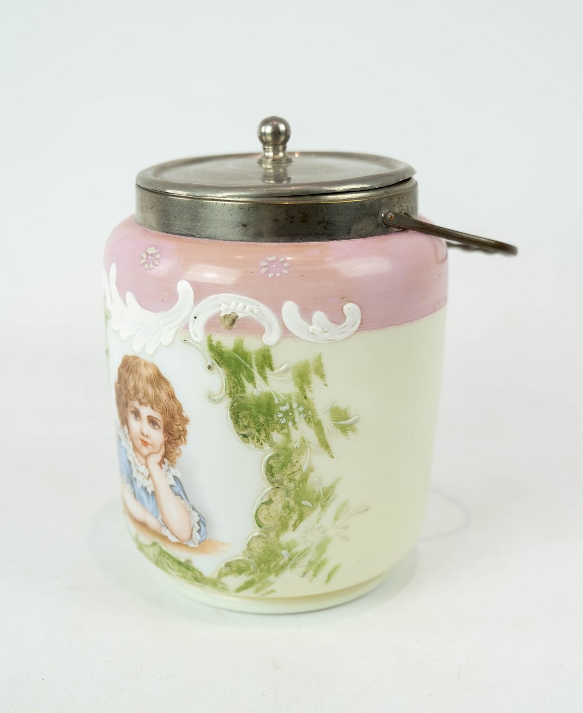 English jar for bisquits of fajance decorated with portrait, in great condition.