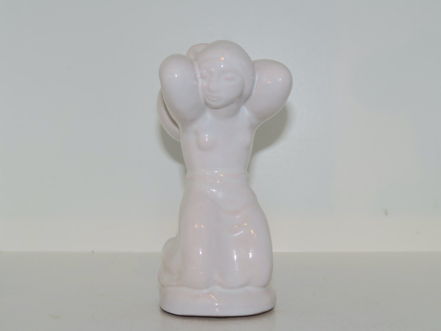Hjorth art pottery from the island Bornholm, white woman figurine.