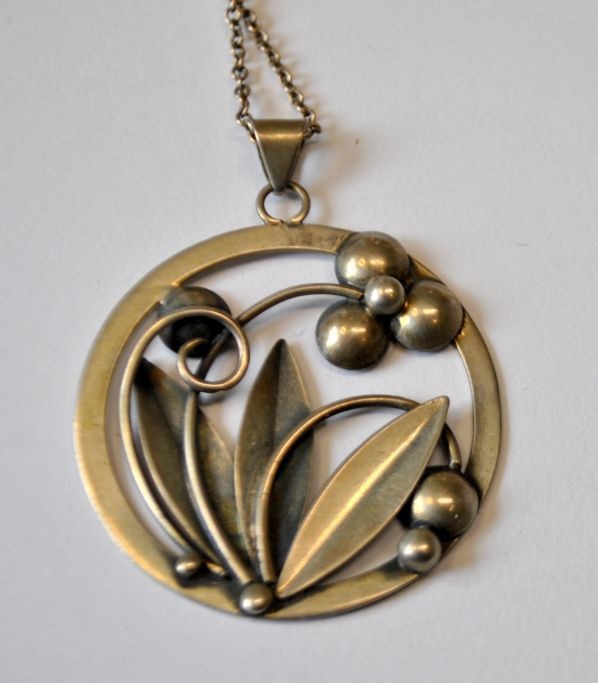 Sølv vedhæng med planter, A. Klokker (1893 - 1937) Kerteminde, Danmark.