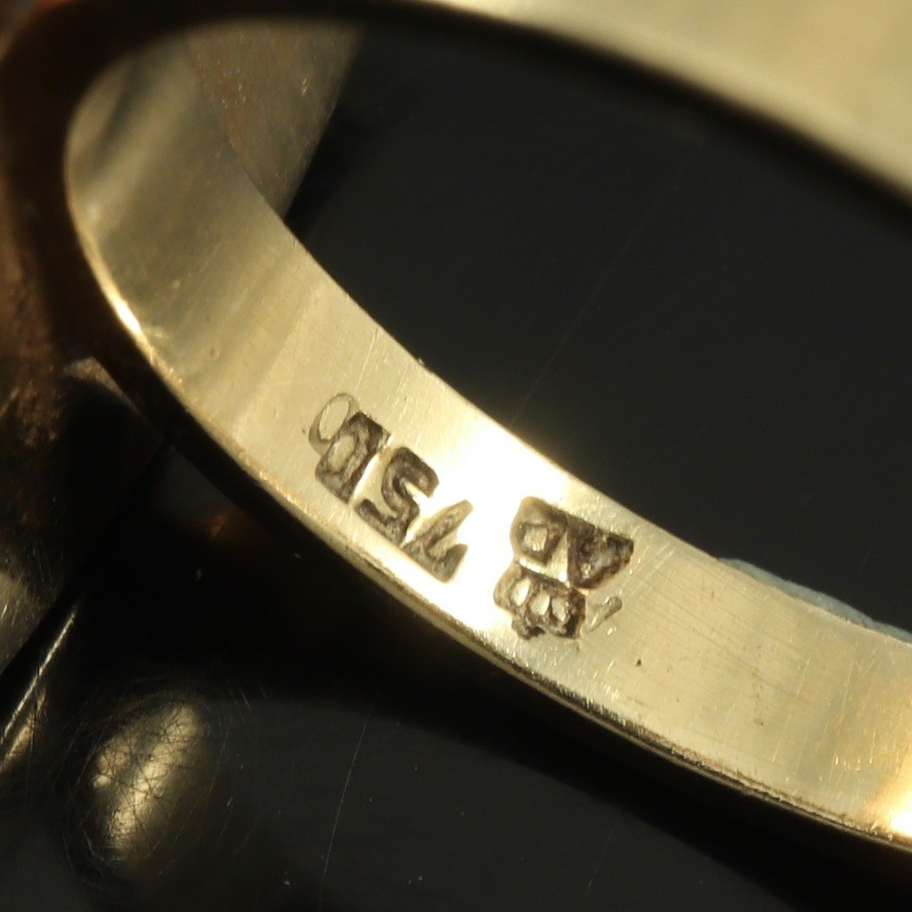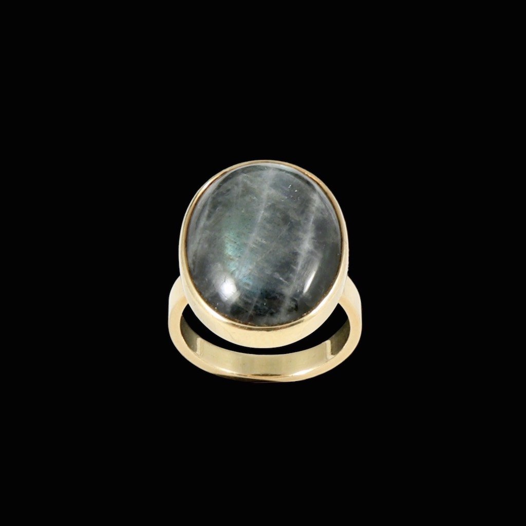 A. Dragsted. Ring i 18k guld med labradorit.