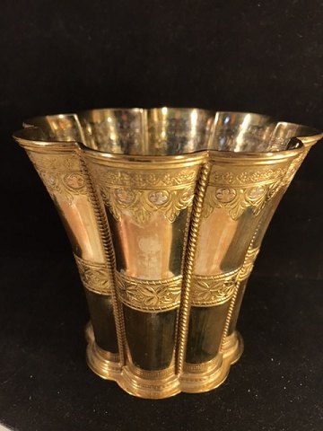 Margrethe Bæger. Gold-plated 925 sterling silver. Height 9.5 cm. Diameter for top 10.5 cm. Silver Master Royal Court Supplier A. Michelsen. Contact telephone 4586983424