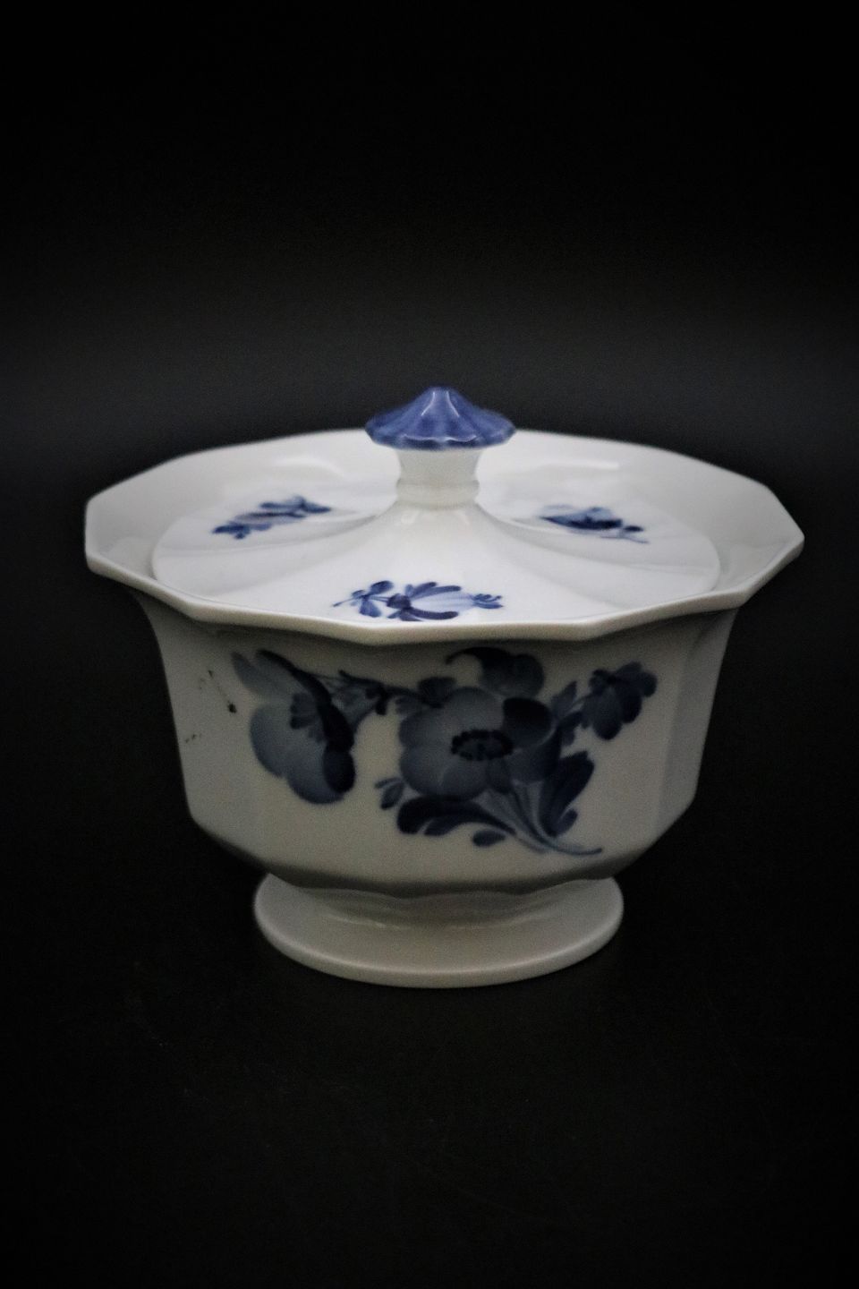 Rare Royal Copenhagen Blue Flower Angular jam jar with lid.