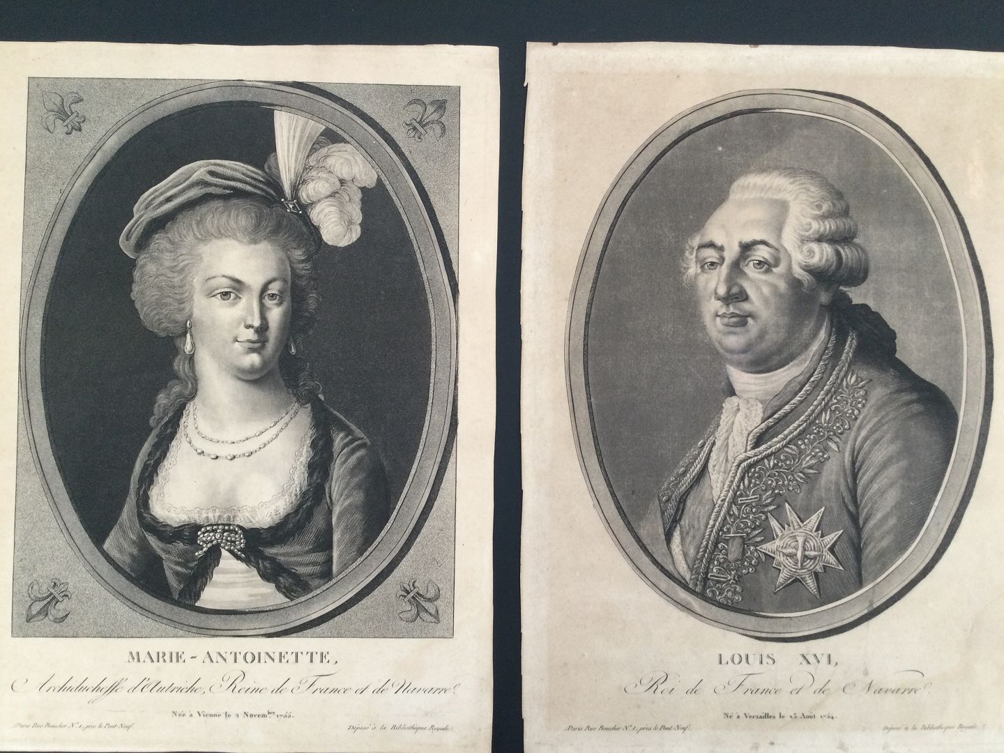 Text available in Danish: Kobberstik - Portrætter af Kong Louis XVI og Dronning Marie Antoinette.