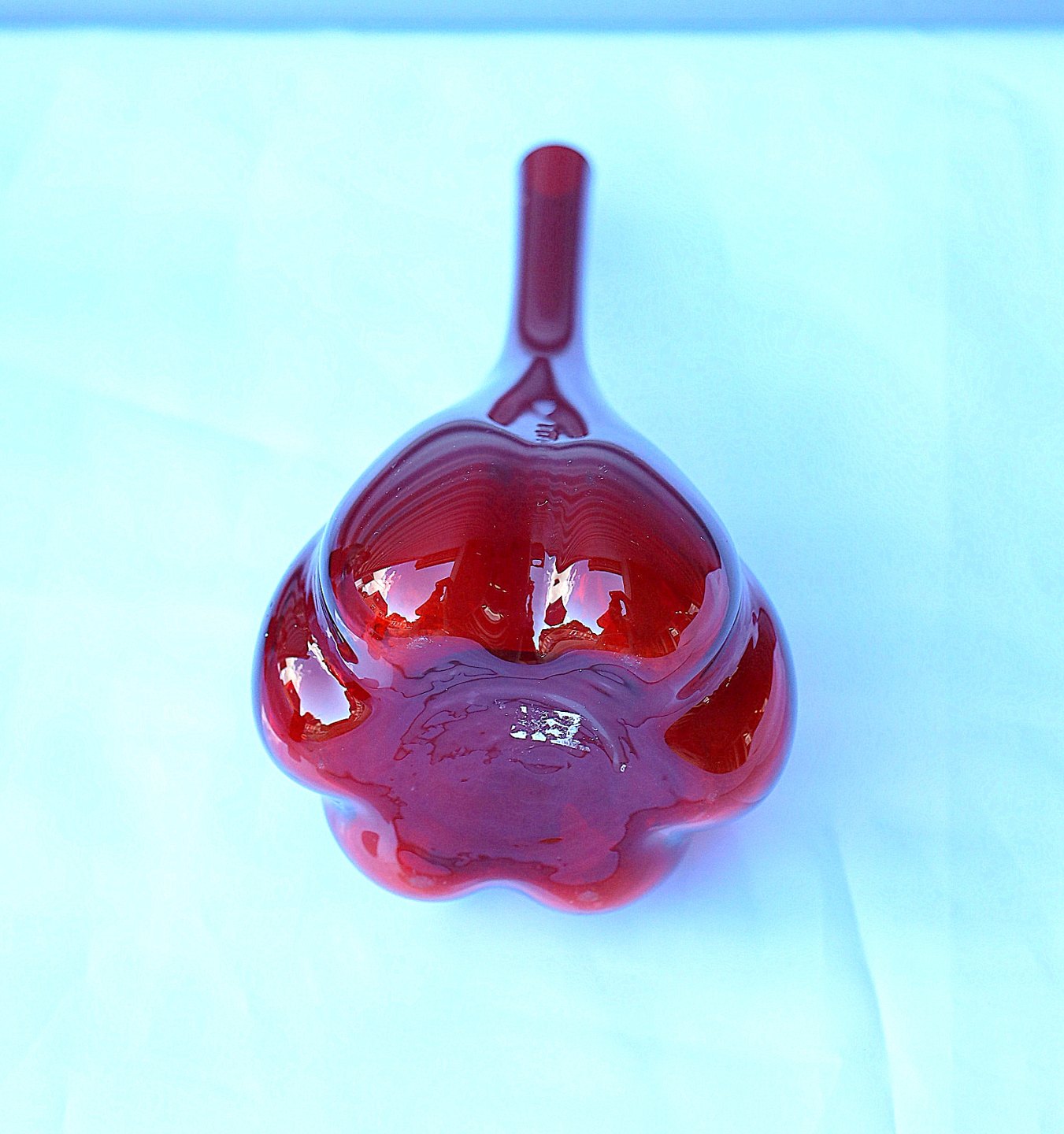Rød vase Dyb rød, løg formet glasvase, med lang hals.