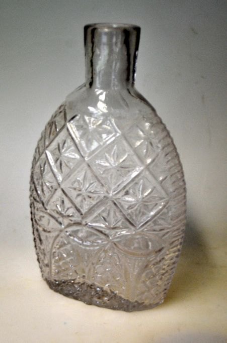 Pocket lark, clear glass, Conradsmide, pear-shaped, 1/4 pot, approx. 1850. Denmark. Cutting edge. Height .: 14.7 cm. NB: Perfect condition!