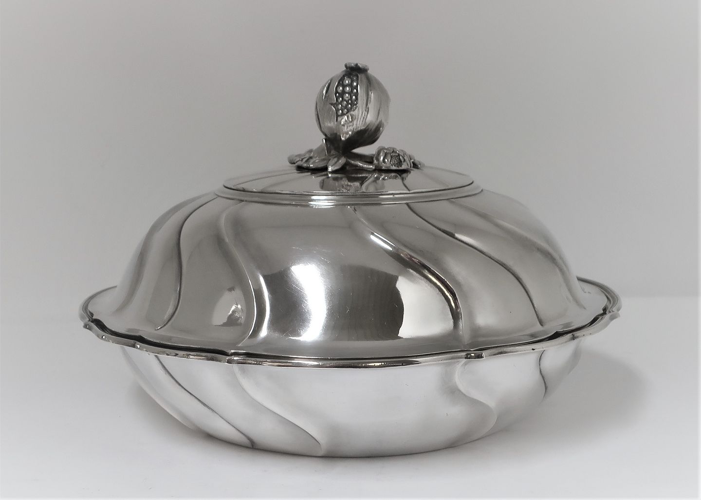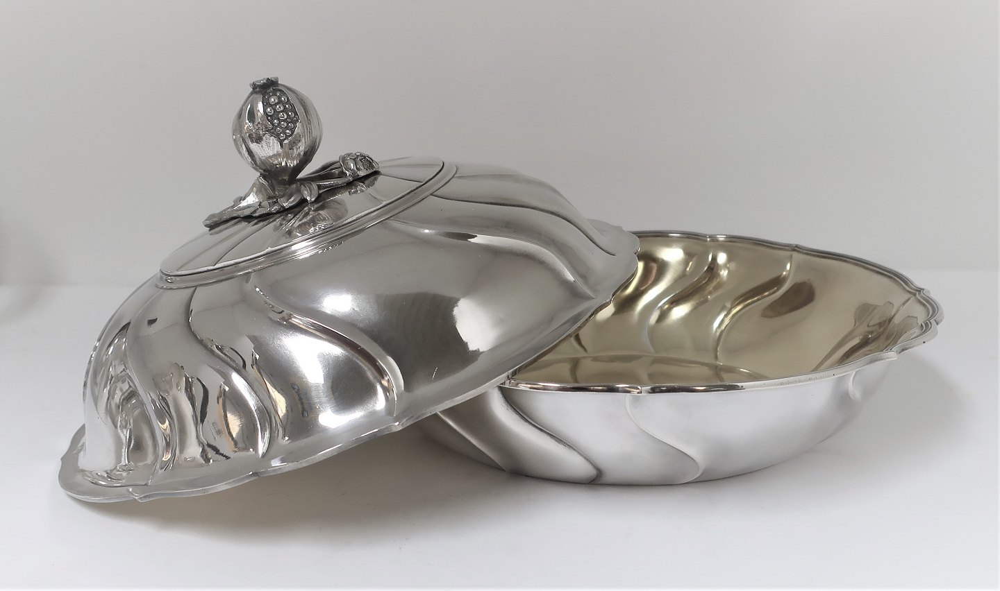 Michelsen. Rundt sølv lågfad (925). Diameter 23 cm. Indvendigt forgyldt. Produceret 1908.