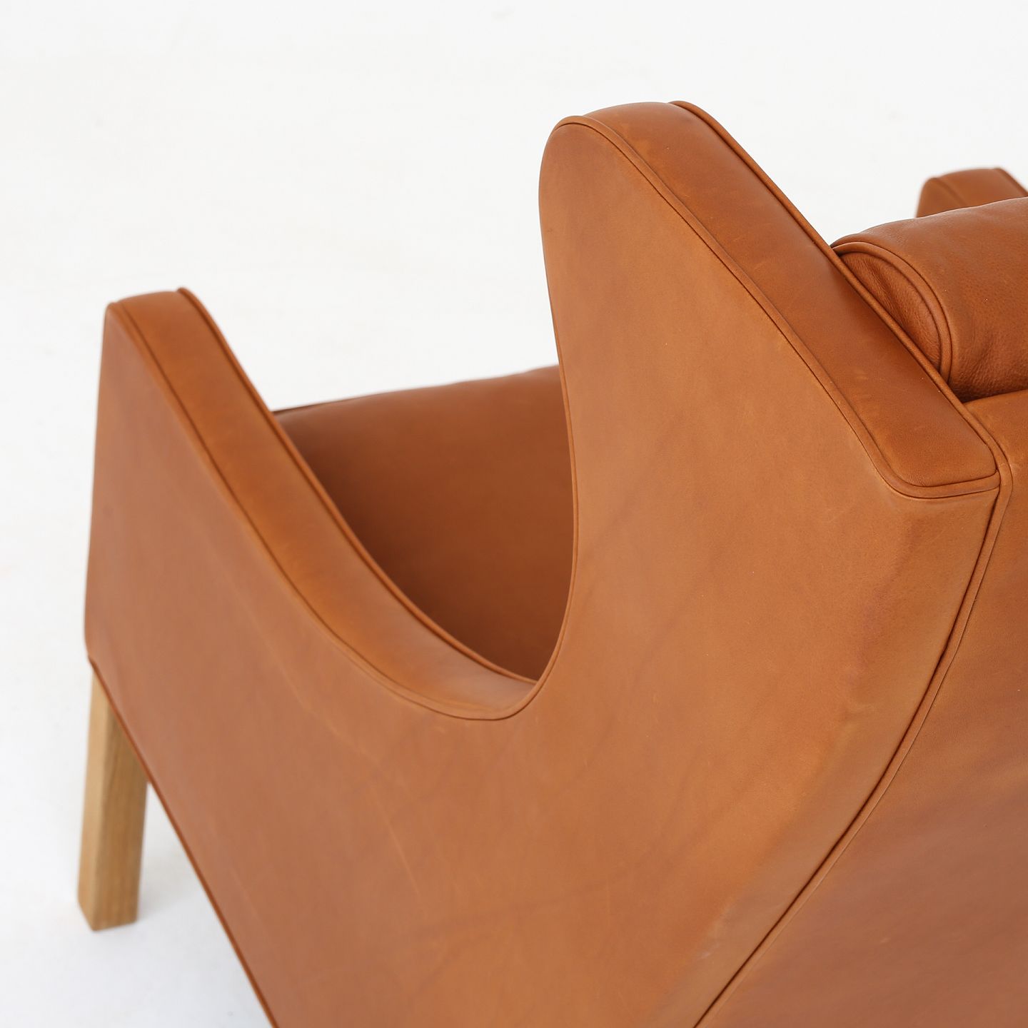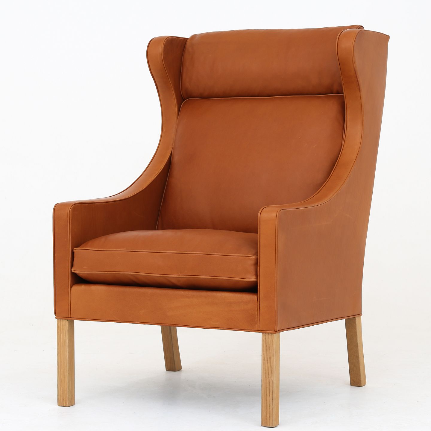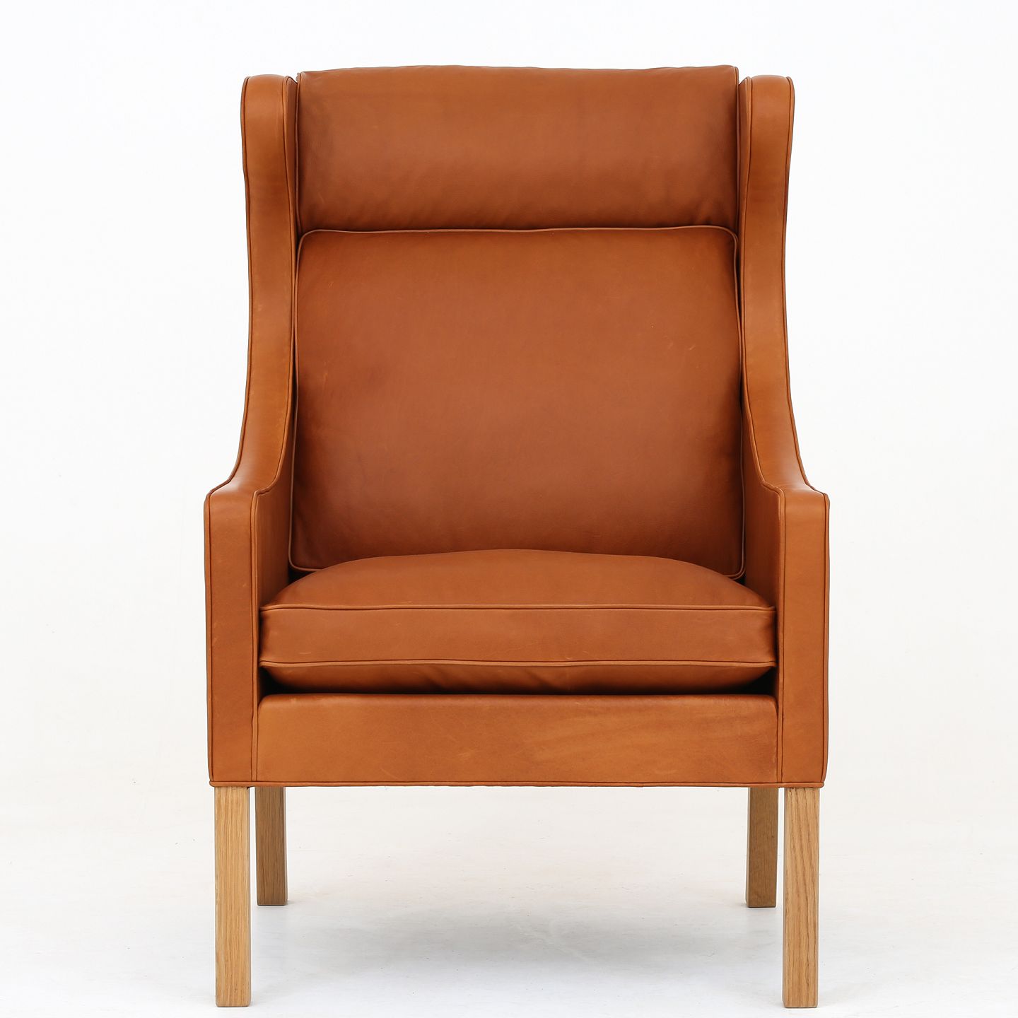 BM 2204 - Nybetrukket Øreklapstol i Klassik Cognac-læder med ben i eg.