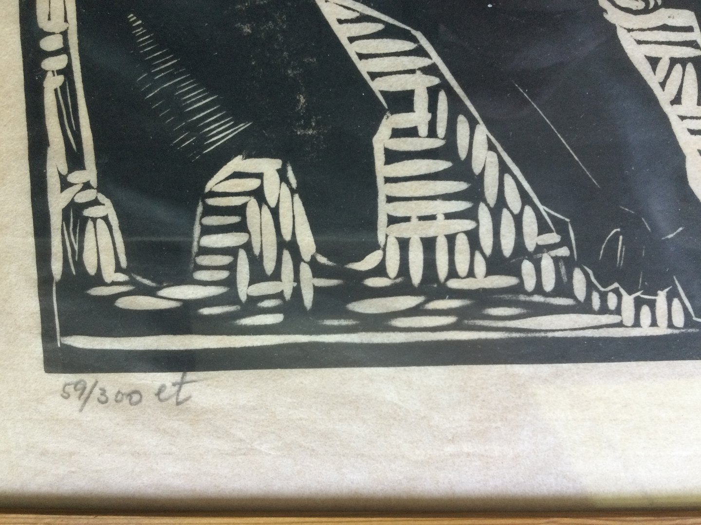 Linoleumssnit på papir.