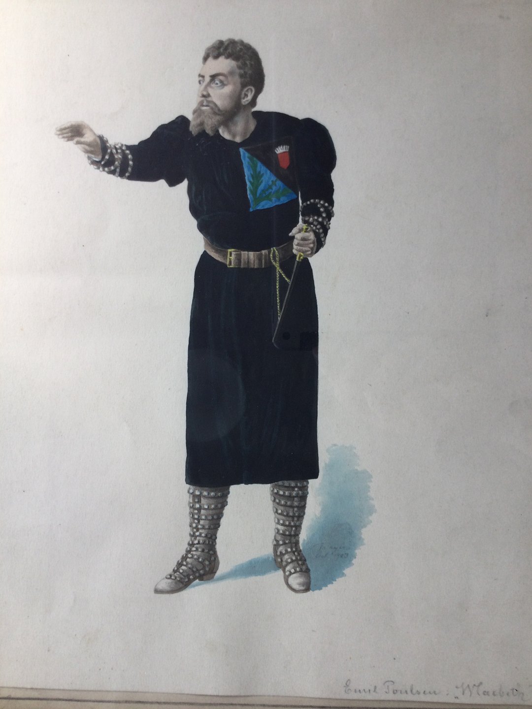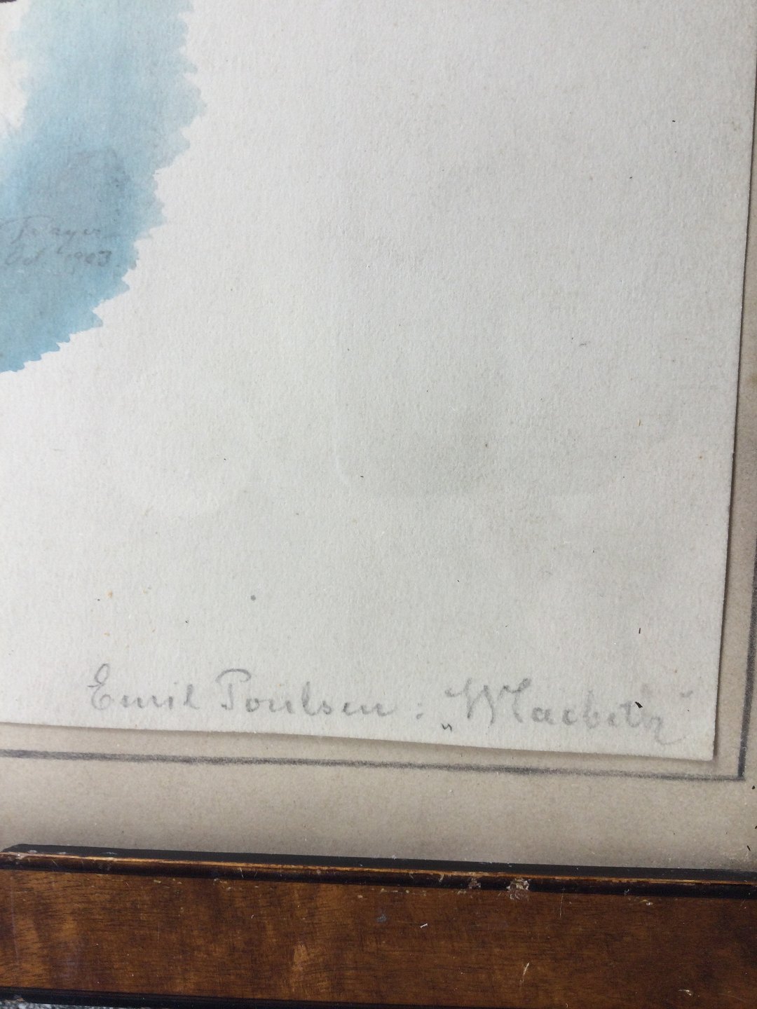 Text available in Danish: Akvarel Christian Bayer - Emil Poulsen i Macbeth 1903.