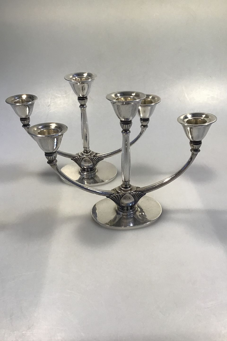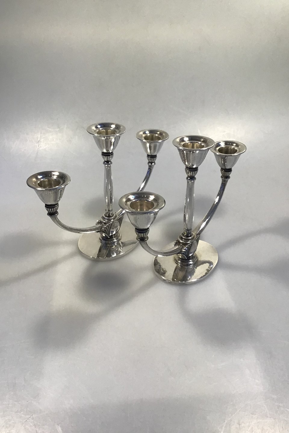 Georg Jensen Sterling Sølv 3-armede stager No 673B (2) Måler H 16 cm (6 1/3 in) Vægt 1073 gr