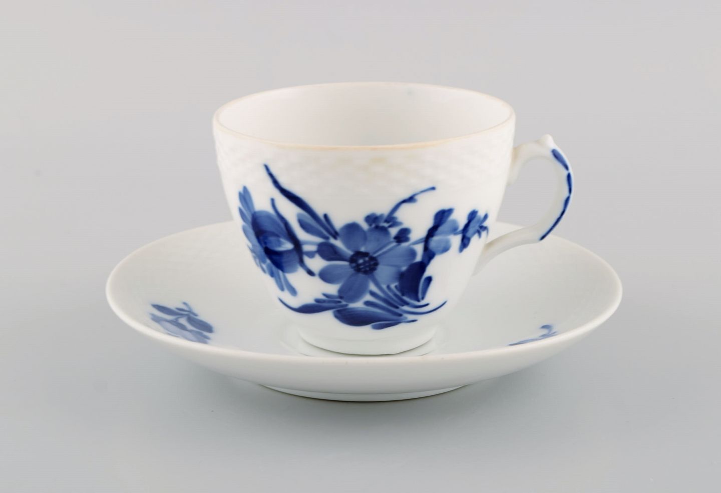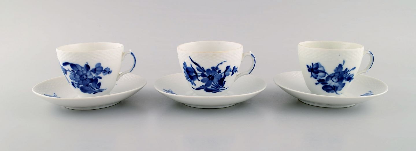 Tre Royal Copenhagen Blå Blomst Flettet kaffekopper med underkopper. 1950'erne. Modelnummer 10/8261.
