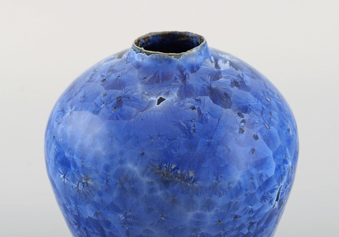 Eli Keller (f.1942), Sverige. Unika vase i glaseret stentøj. Smuk krystalglasur i blå nuancer. 21. Århundrede.