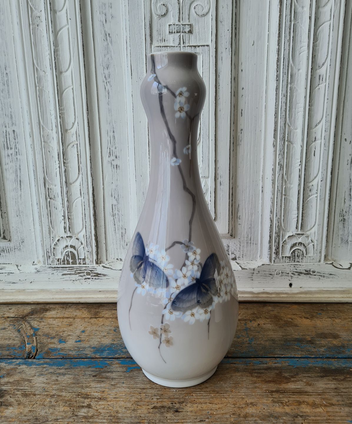 Royal Copenhagen large Art Nouveau vase decorated with butterflies and flowers