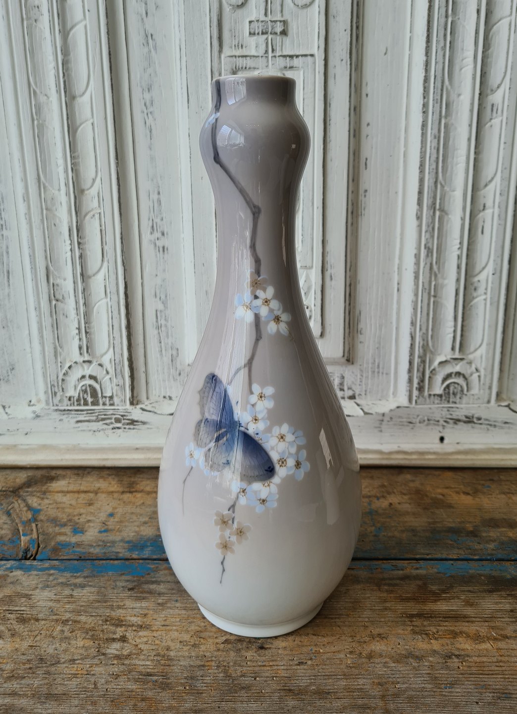 Royal Copenhagen large Art Nouveau vase decorated with butterflies and flowers no. 1528/734 - 34 cm.