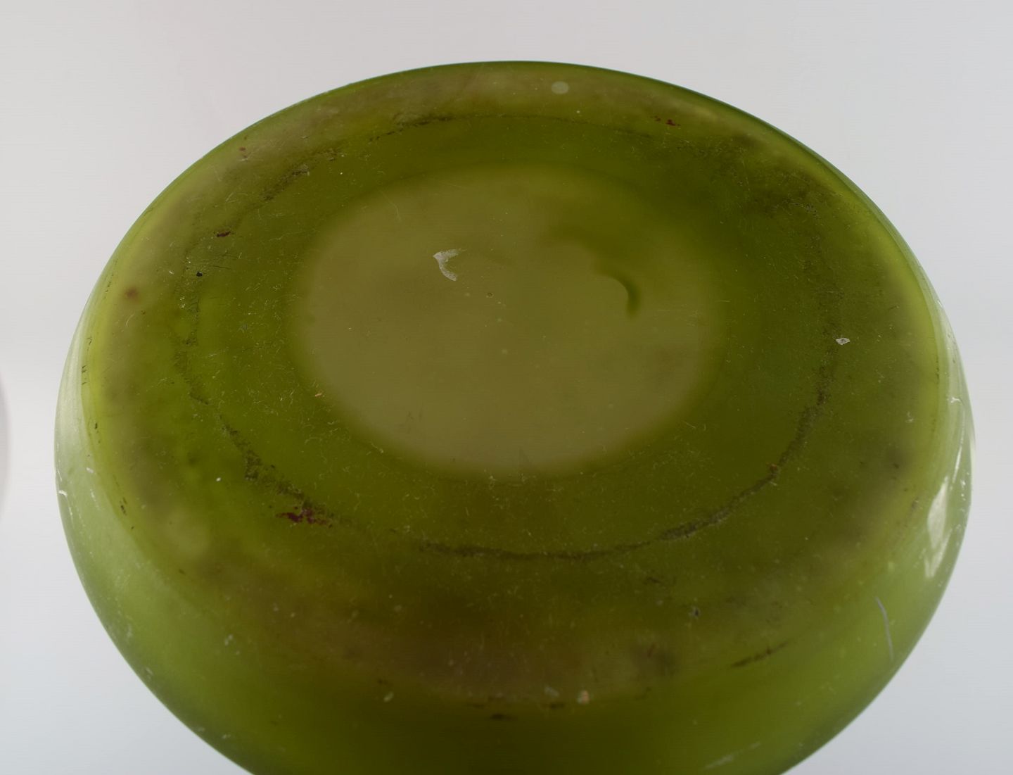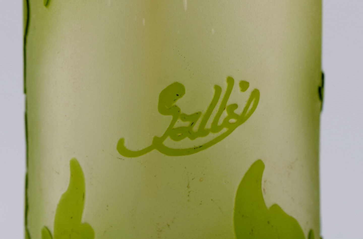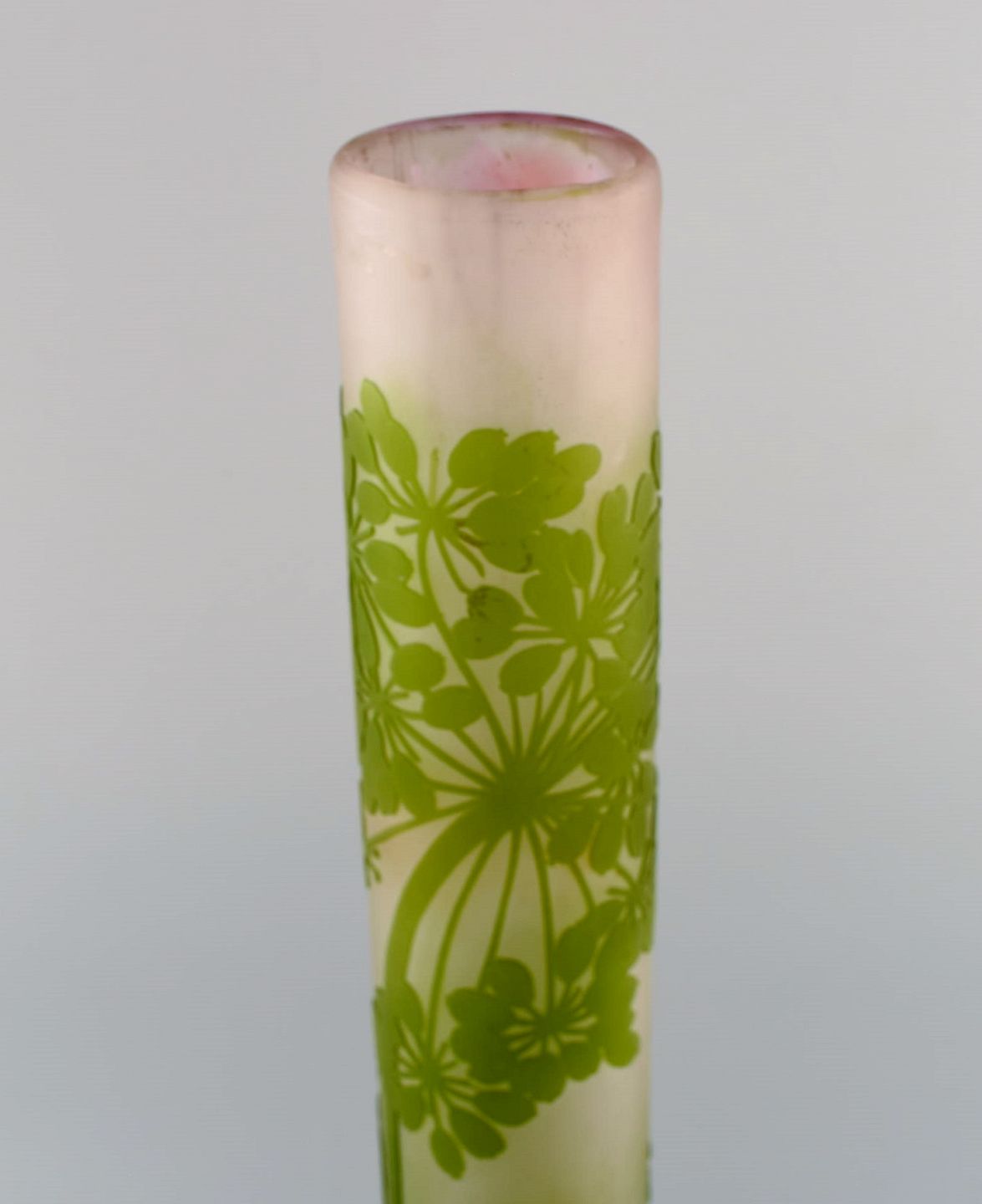 Gigantisk Emile Gallé vase i matteret kunstglas med grønt overfang udskåret med motiver i form af bladværk. Tidligt 1900-tallet.