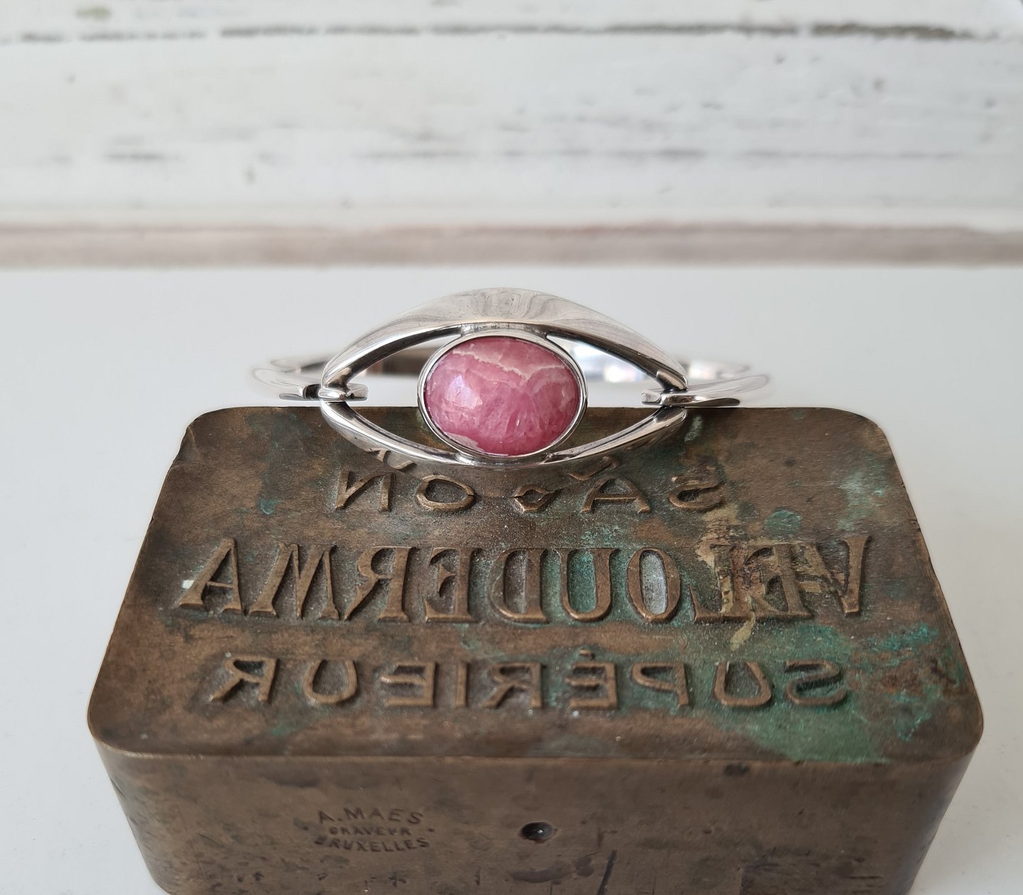 N.E.From vintage armring i sølv med rosa kvarts