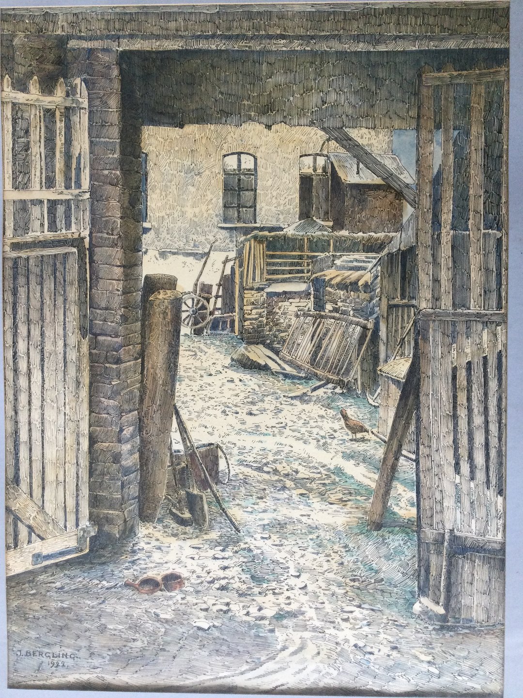 Tegning af John Bergling - Gårdeksteriør 1922.