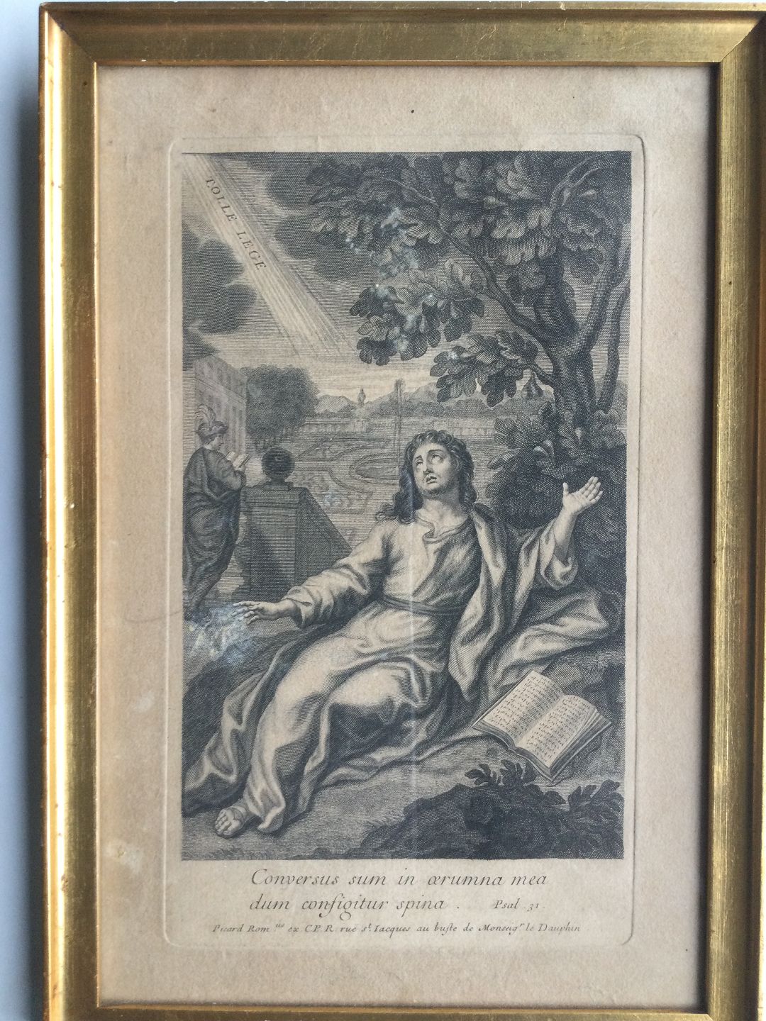 Text available in Danish: Kobberstik af Étienne Picart - motiv fra Salmernes Bog 31.