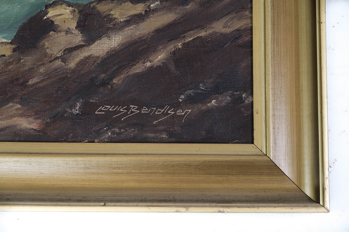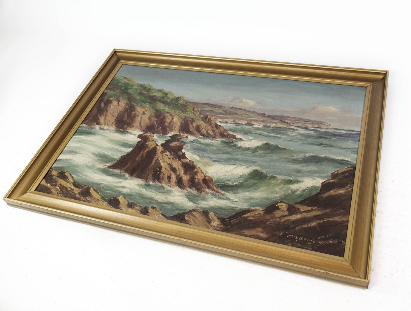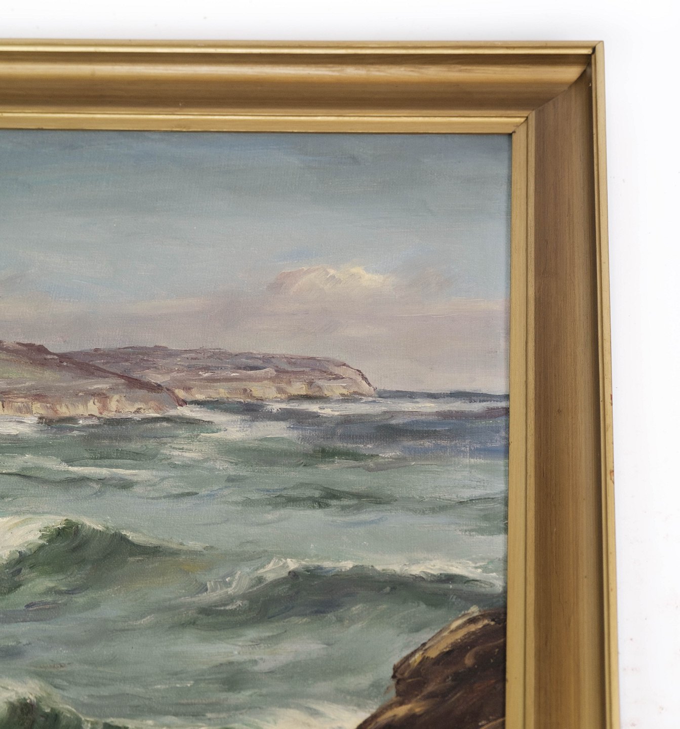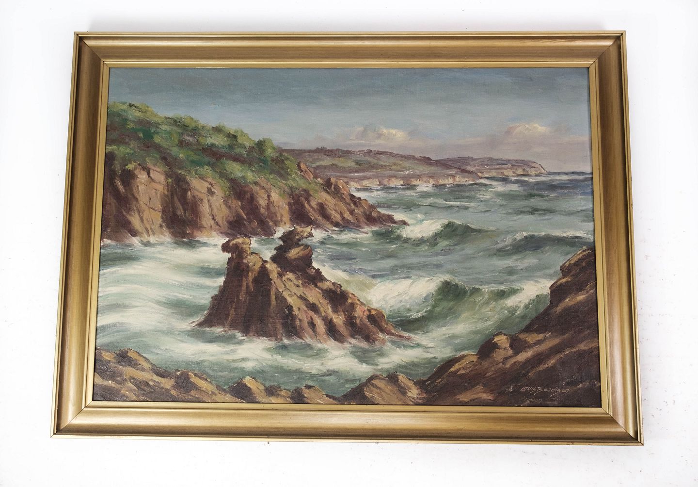 Maleri på lærred med hav motiv og forgyldt ramme, signeret Louis Bendtsen fra 1920erne.