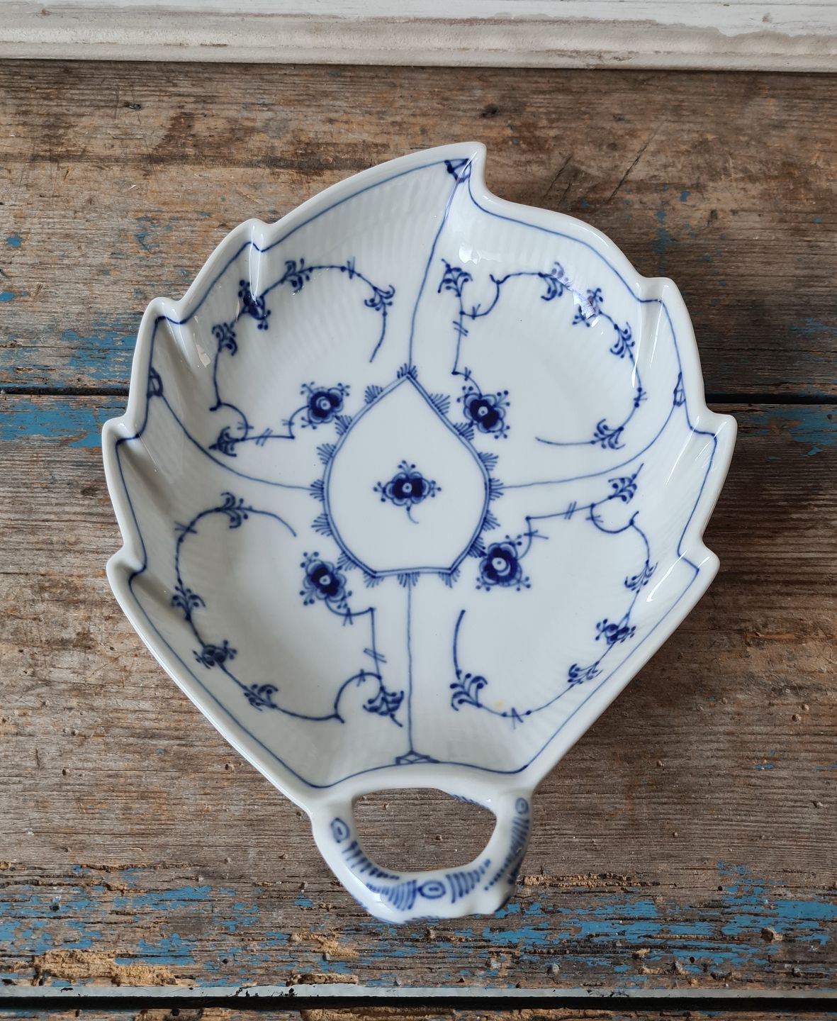 Royal Copenhagen Musselmalet riflet bladformet asiet no. 144