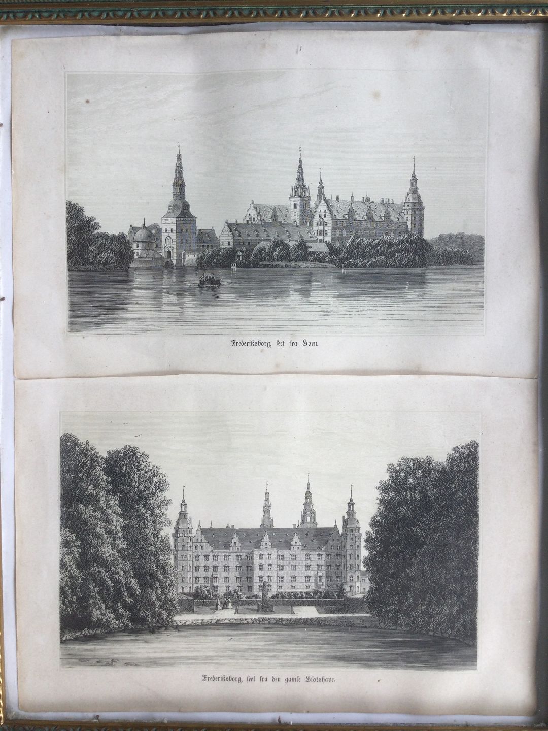 Text available in Danish: Litografier af Frederiksborg Slot.