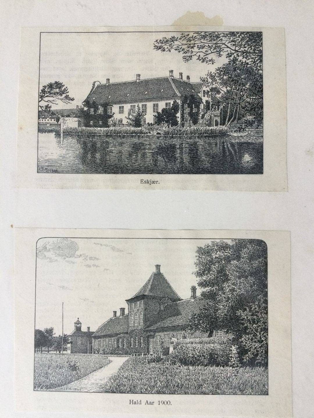 2 xylografier af Jyske Herregårde ca 1900.