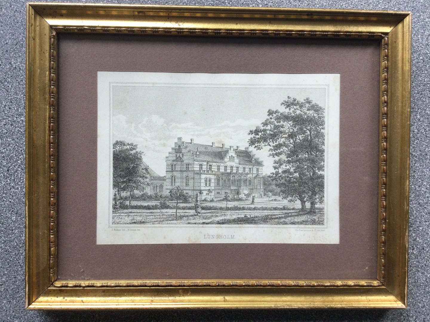 Litografi af Lungholm Hovedgård på Lolland.