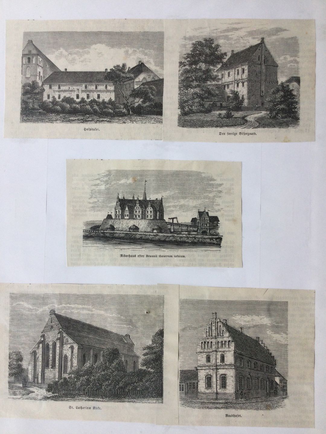 5 træsnit fra Ribe 1879 i én skifteramme.