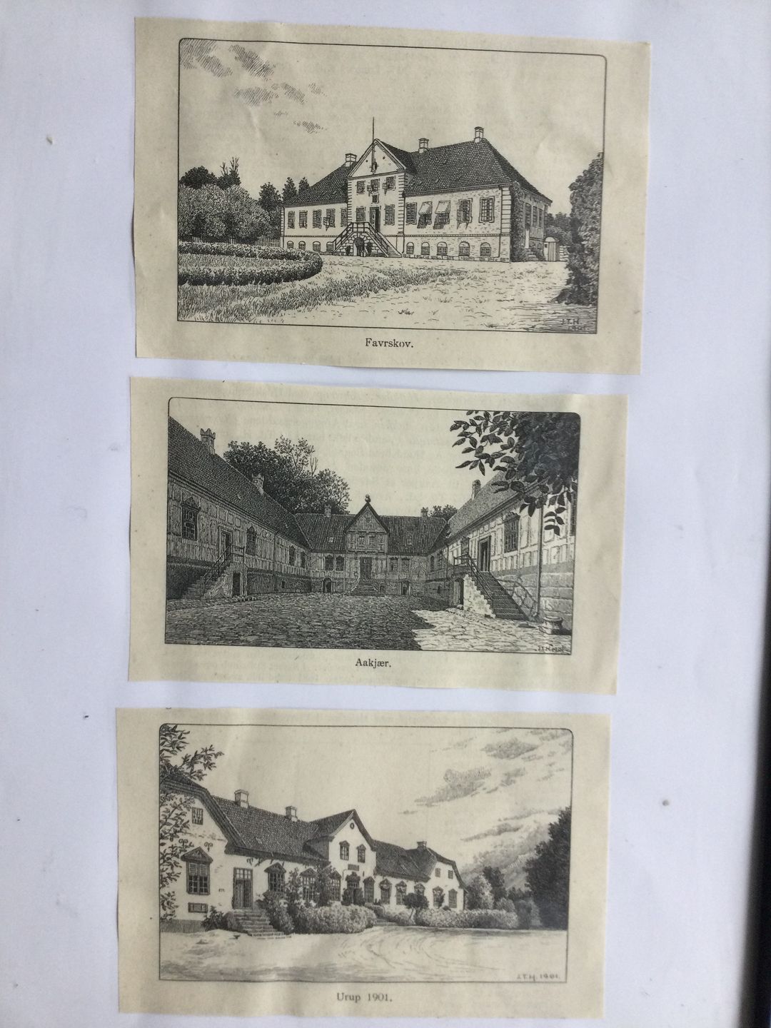 Xylografier af J.T. Hansen - Herregårdene Favrskov Hovedgård, Aakær Gods og Urup Hovedgård i Jylland 1901.