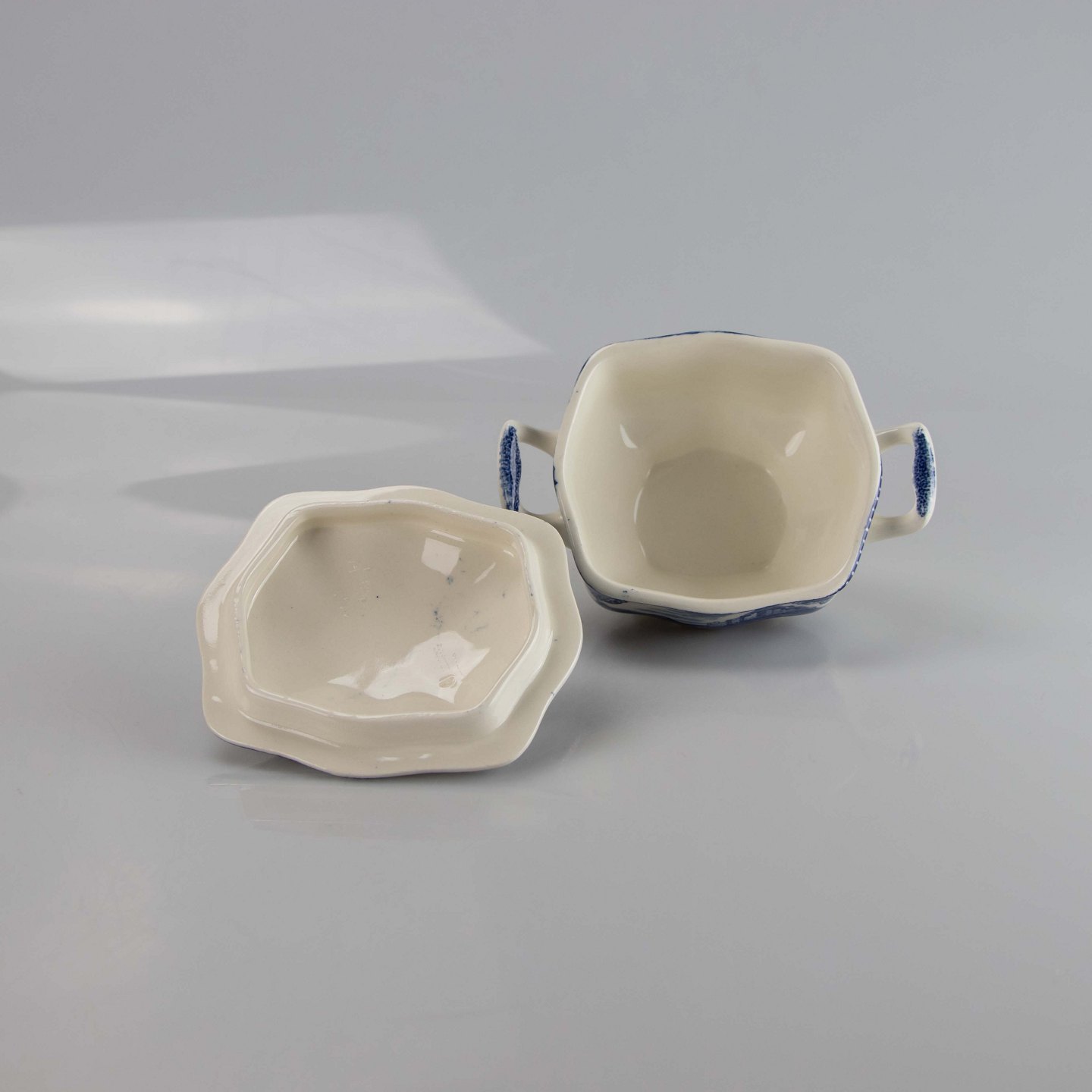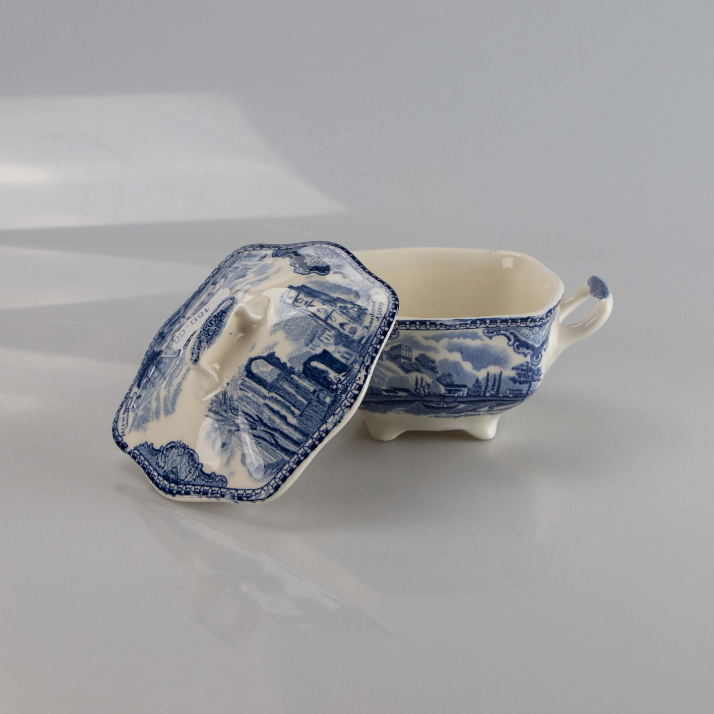 Sukkerskål i engelsk fajance fra stellet Old Britain Castles blue