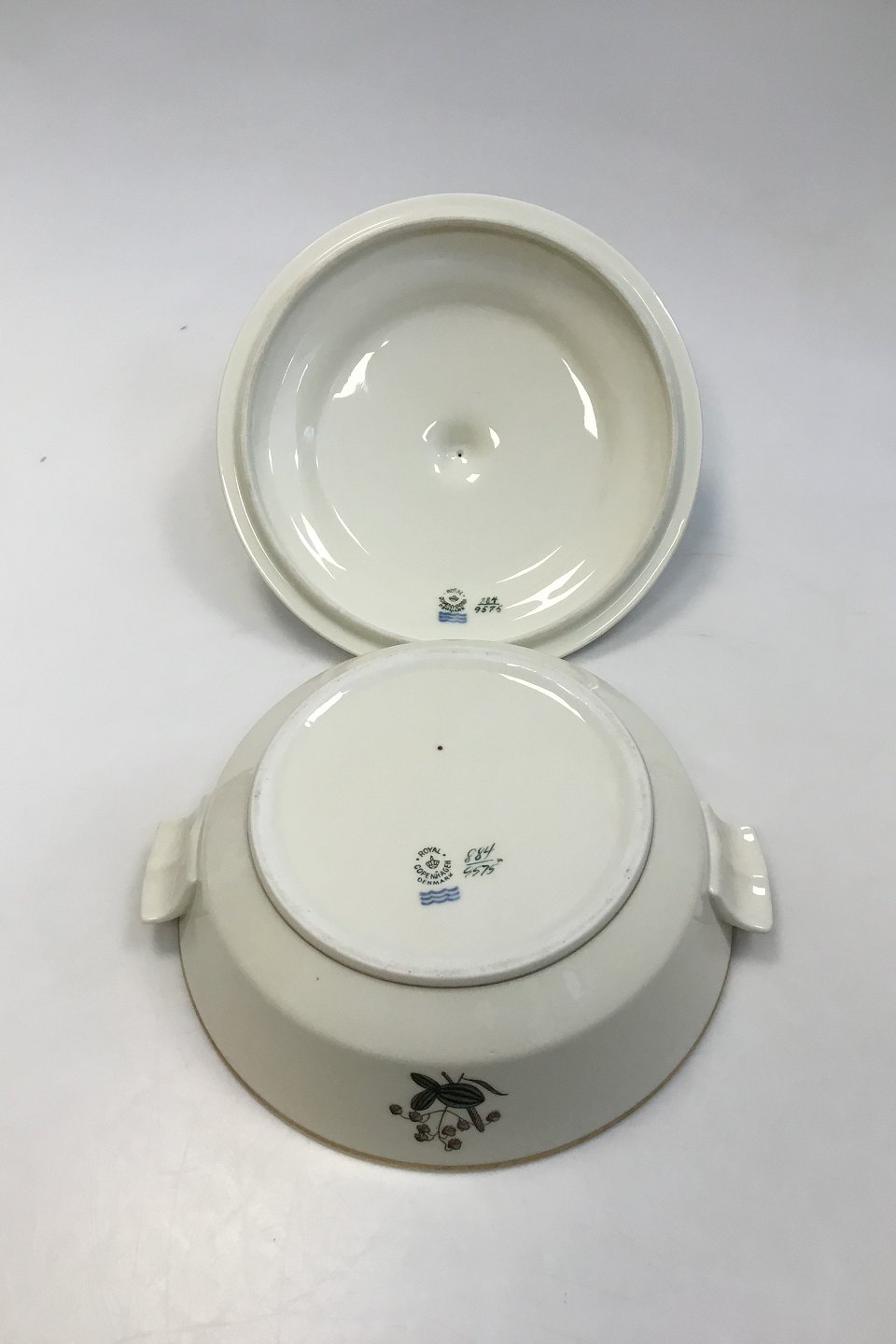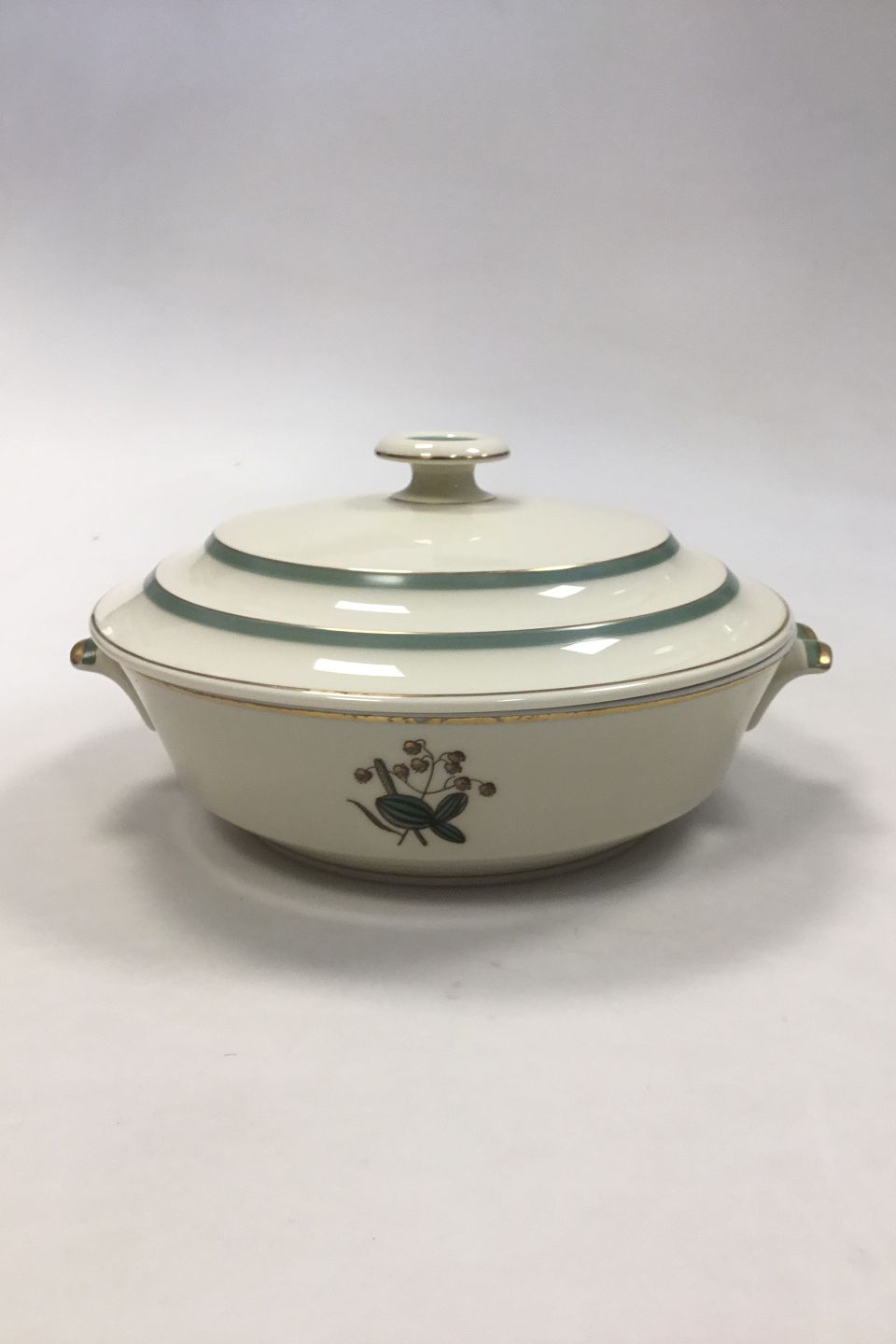 Royal Copenhagen Hjertegræs Rund Lågskål No 884/9575. Måler 12 cm / 4 23/32 in. x 22 cm / 8 21/32 in. dia. Let slid på guldkant.