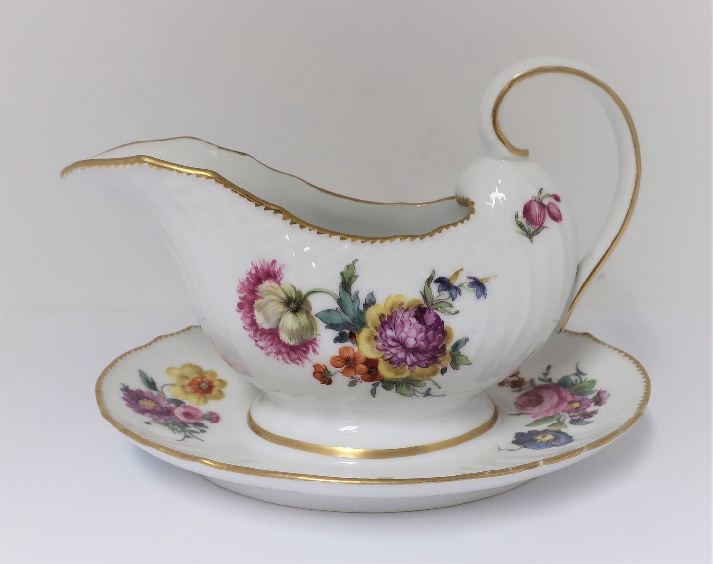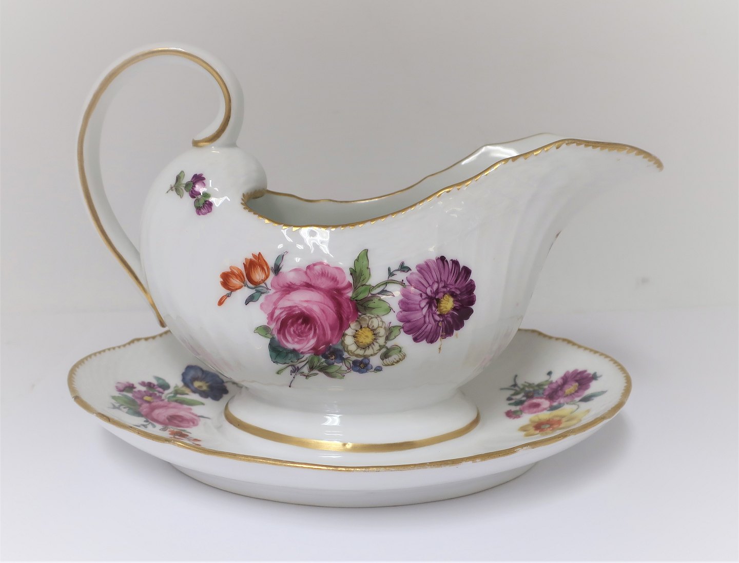 Royal Copenhagen. Saksisk blomst. Sauceskål. Model 4 / 1649. Længde 21 cm. Produceret før 1890. (1 sortering)