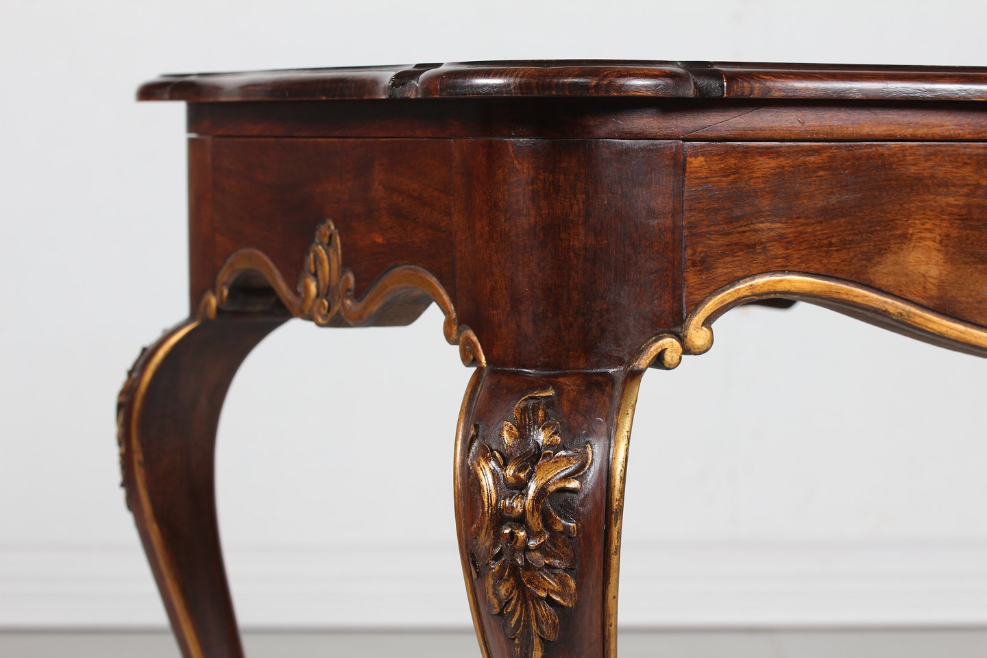 af mahogni m/svungne ben og forgyldte udskæringer i form af stiliseret bladværk