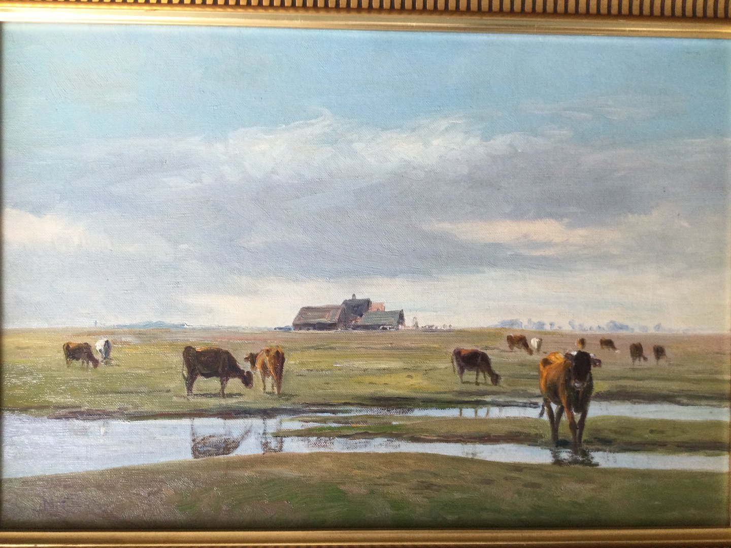 Maleri af Niels Christiansen - Køer og kvier på engen.