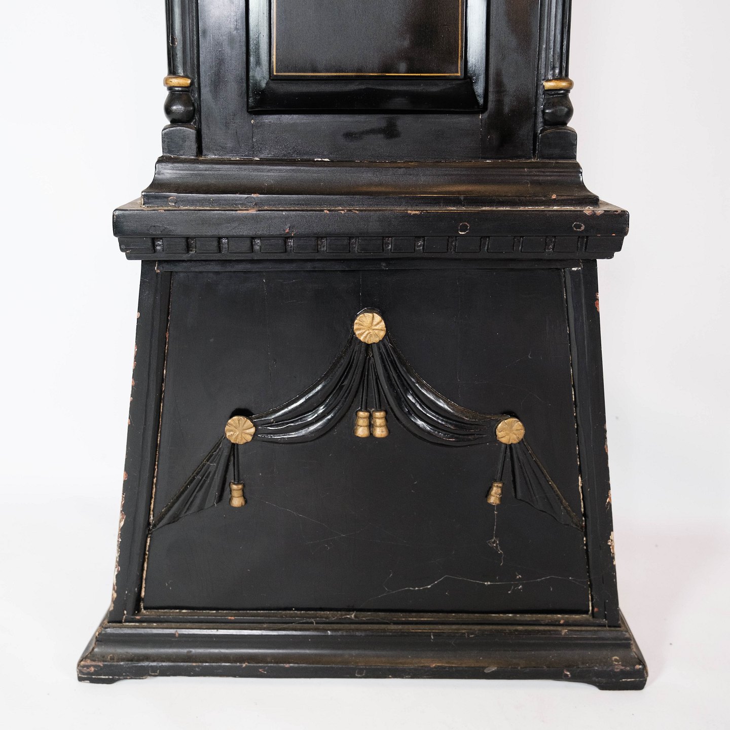 Bornholmerur, model Frøken, af sort malet træ, i flot antik stand fra 1790erne.