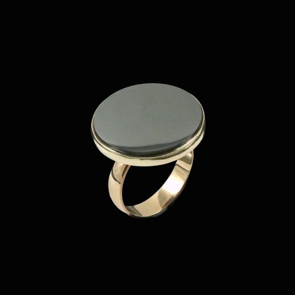 Bræmer-Jensen - Denmark. 14k Gold Ring with Hematite.
